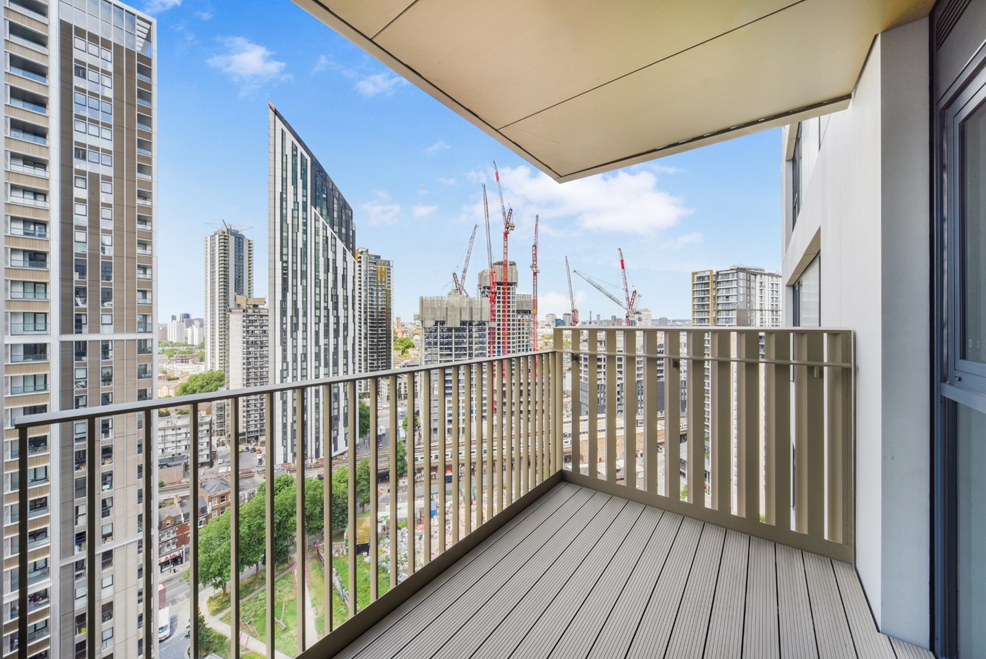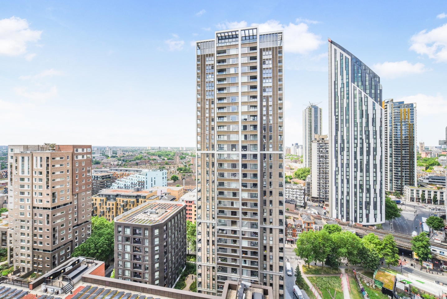 Residents enjoy 24-hour concierge, a gym, a business suite, a residential lounge, and secure cycle storage. Roof terraces are set to open soon.