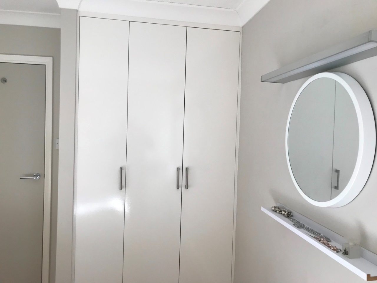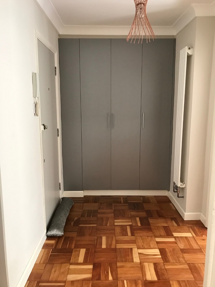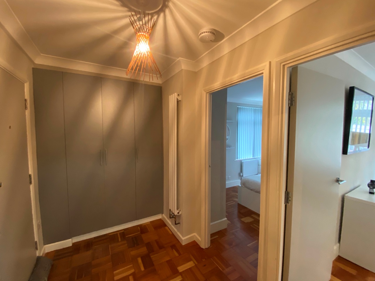 - the bedroom has a double bed and full height wardrobes. There is also a full height utility storage cupboard in the entrance hall providing additional storage/hanging capacity.