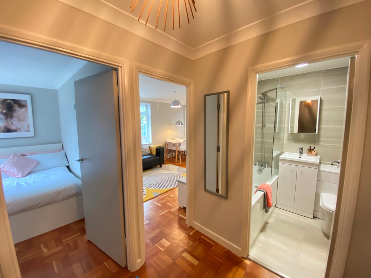Bright, airy 1 bedroom Flat, meticulously refurbished to a high standard. The flat is on the first floor of a small friendly purpose built block, set-back from the road. The property is in excellent condition throughout.