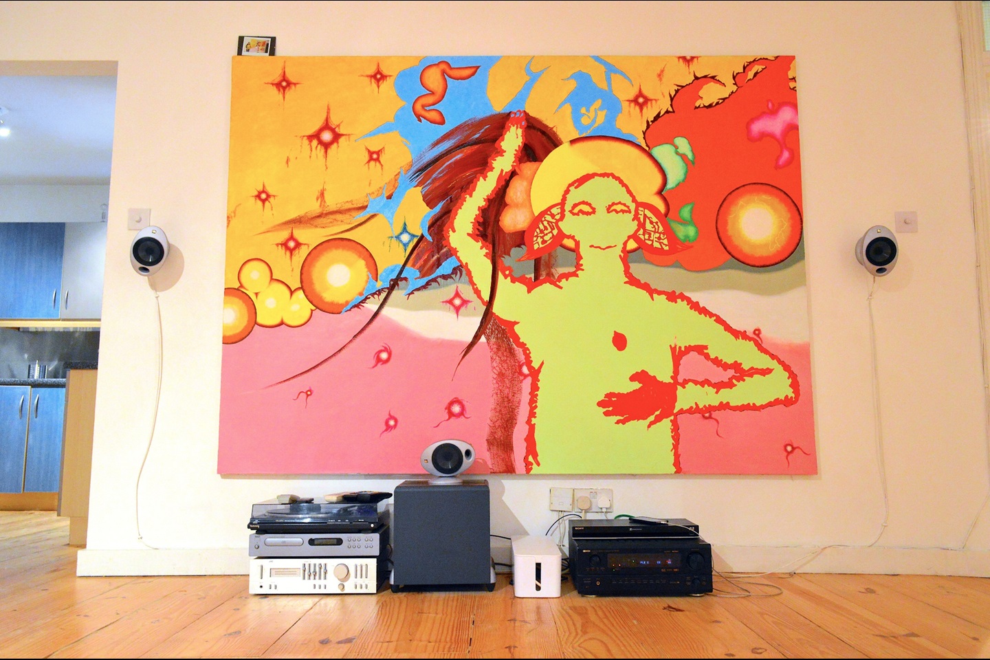 Flat is furnished with dining table and chairs, a glass swivel coffee table and side tables, a Natuzzi sofa, a cool Italian designer bed and contemporary art from practising London artists. Flat's style is best described as contemporary artistic/shabby chic.