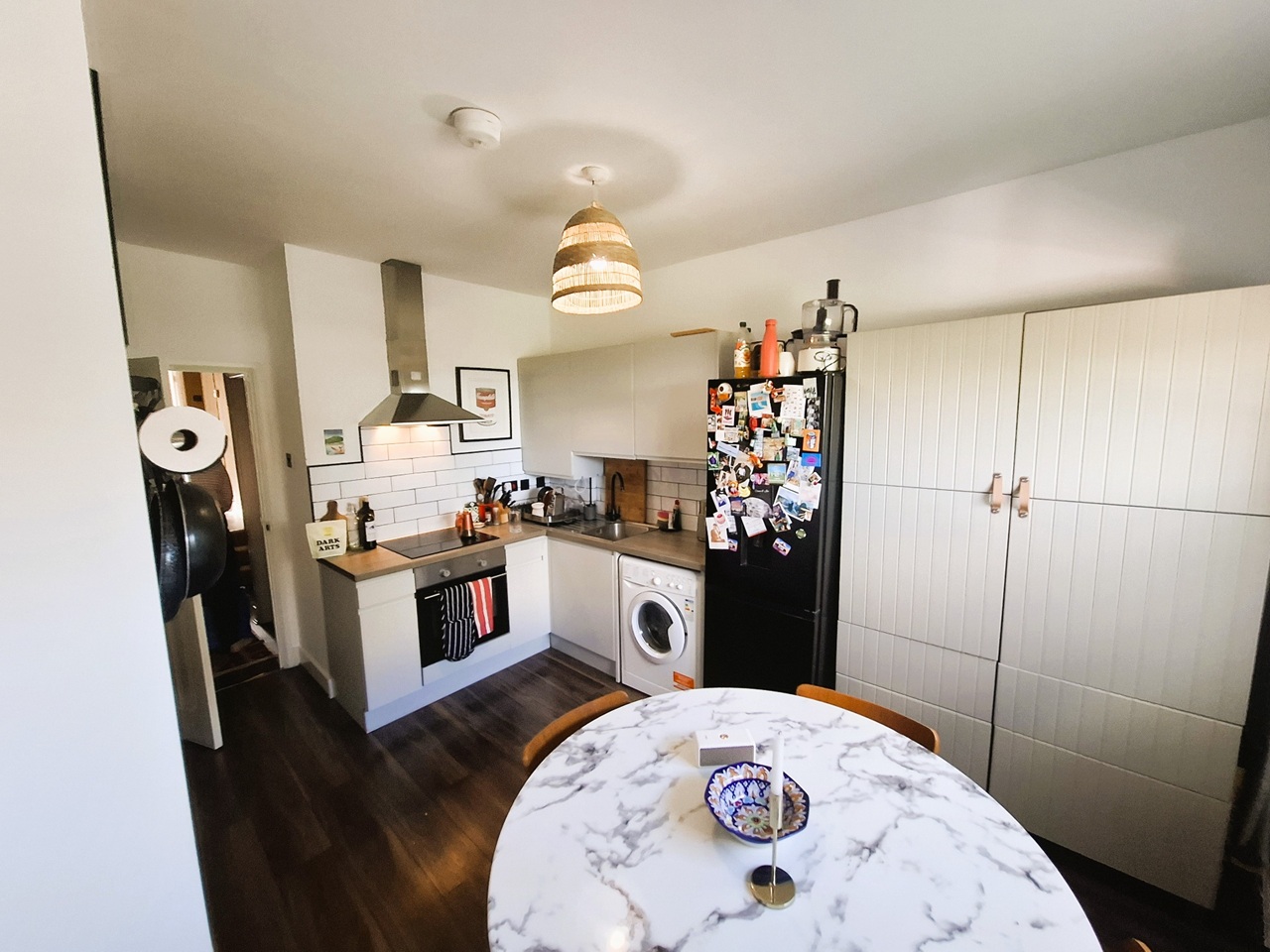 Bright living/kitchen space with integrated appliances