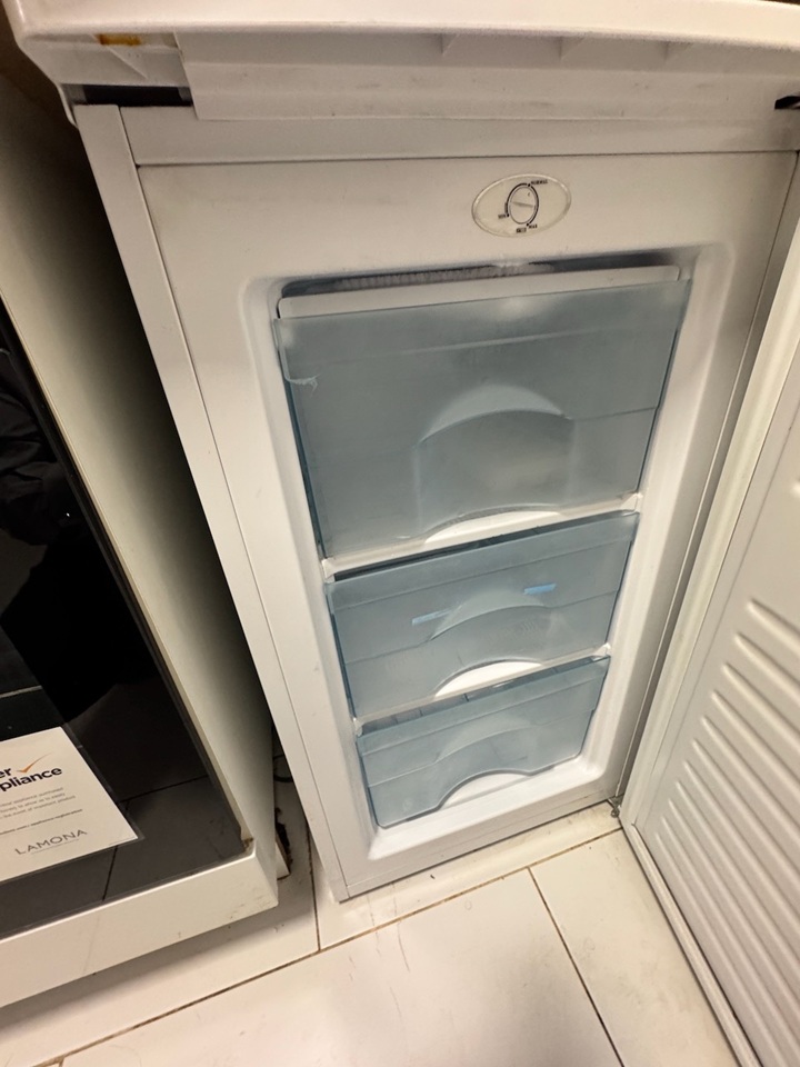 -Modern kitchen with electric hob, oven, washing machine, fridge and separate freezer.