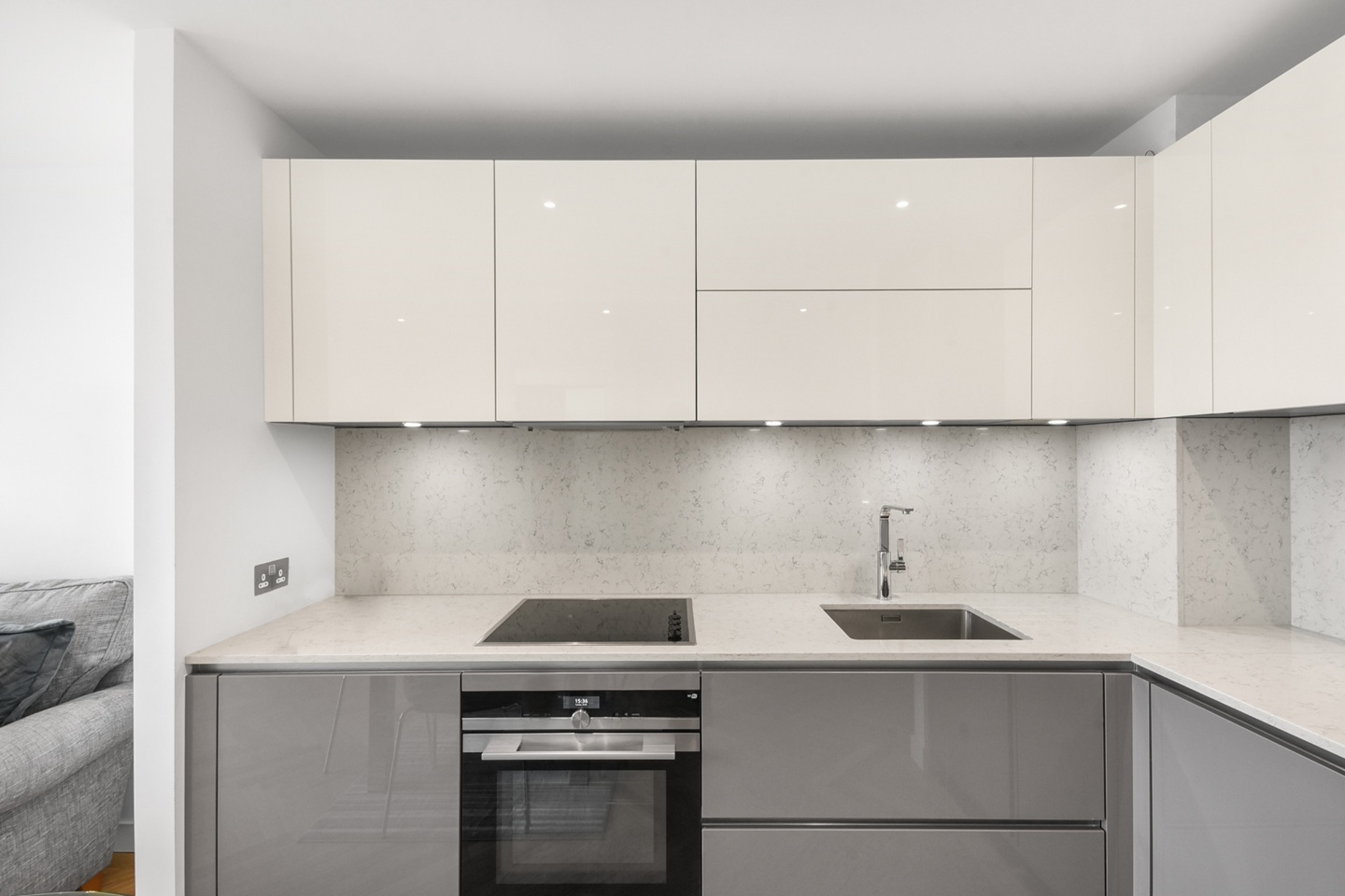 The spacious open-plan living area extends seamlessly onto a fully enclosed winter garden, contemporary open-plan kitchen is finished with sleek gloss cabinetry, while the generous double bedroom and stylish modern bathroom.