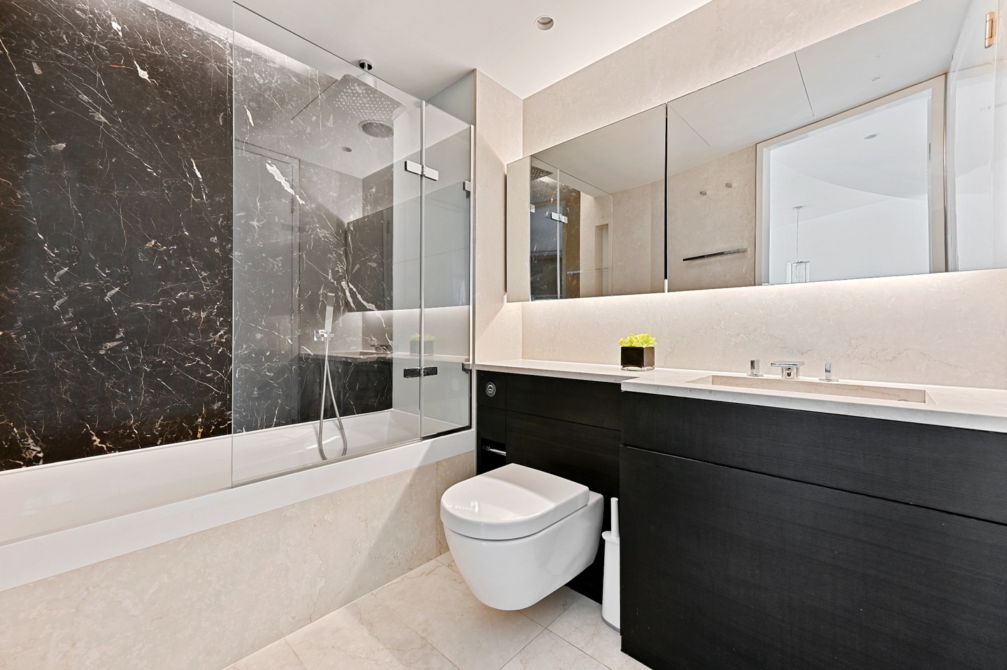 The apartment further benefits from floor to ceiling triple glazed windows, integrated media and security system and comfort cooling.