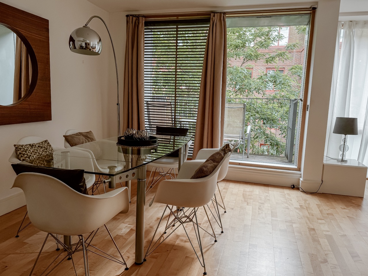 Large open-plan living and dining area with abundant natural light