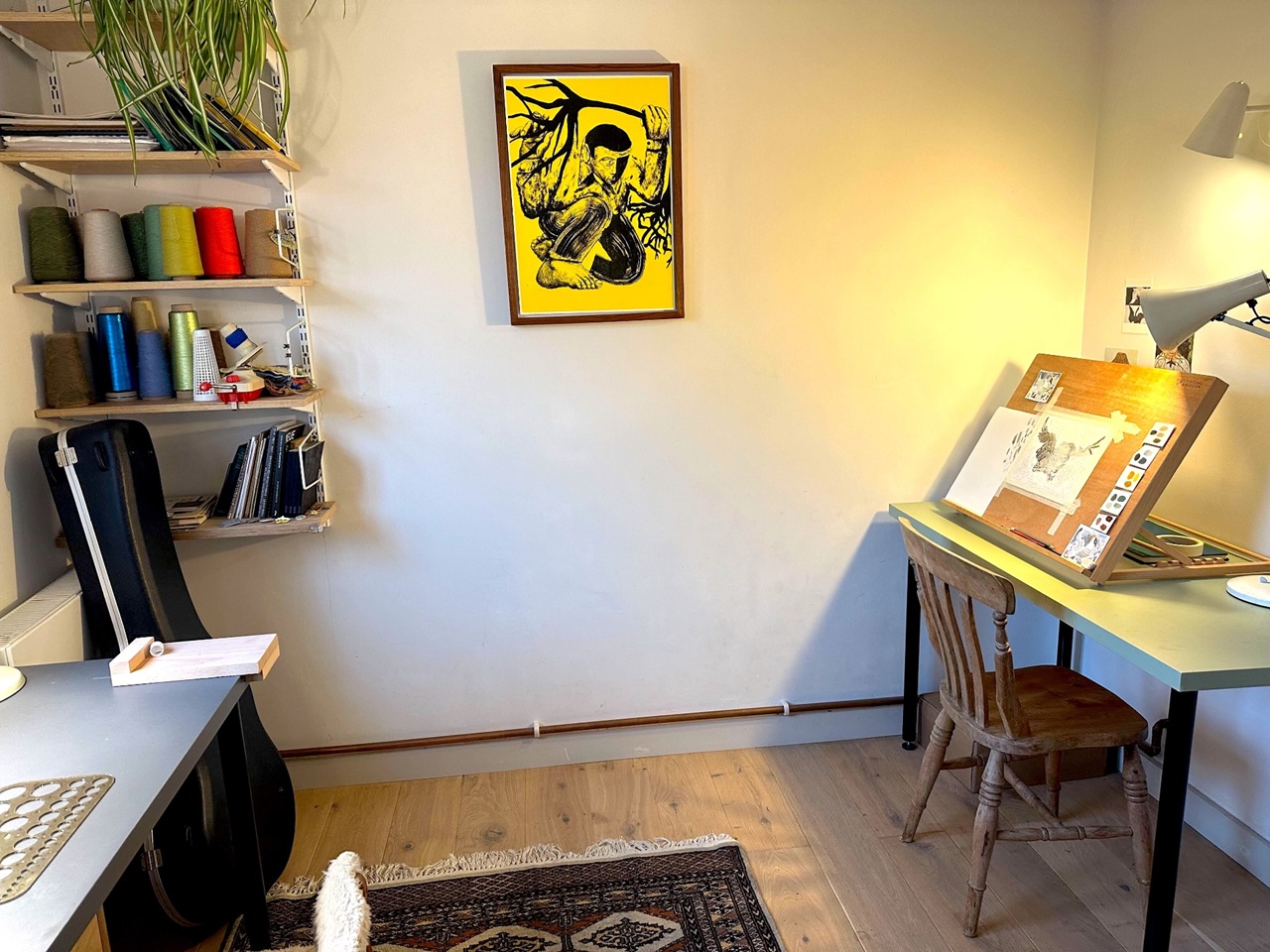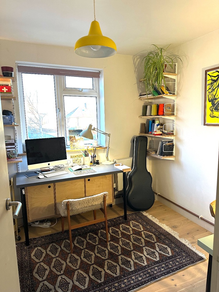 The master bedroom has a king size bed with a large full height built-in wardrobe and area for a work station if needed. The second bedroom has a built-in plywood storage and extra storage units (see photos showing the room as kids bedroom or as a home study/ illustrator's studio for WFH).