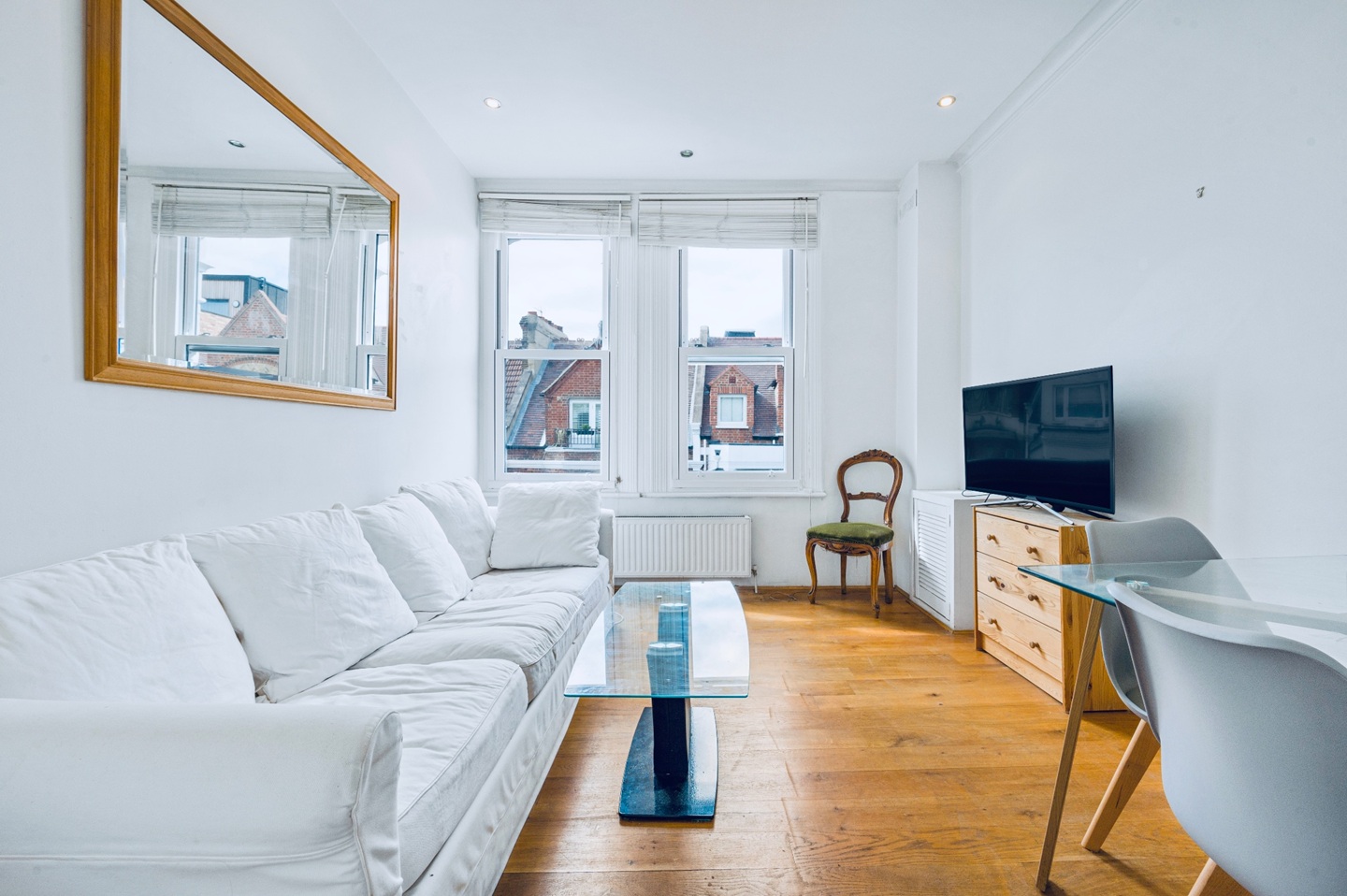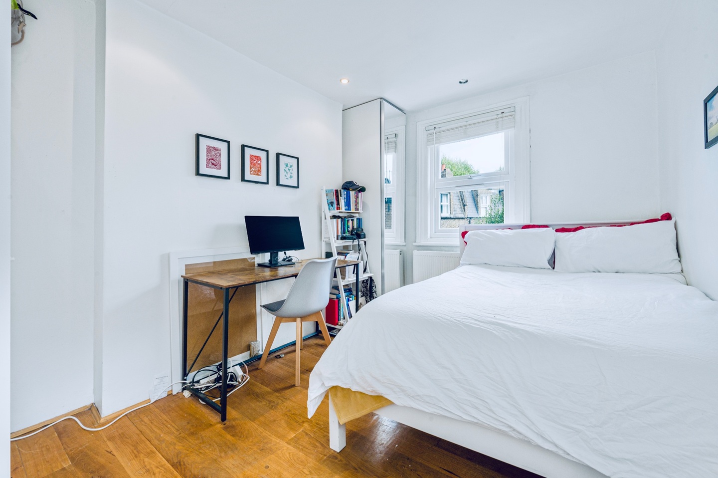 - Bright, quiet second-floor setting with views over Fulham Road
