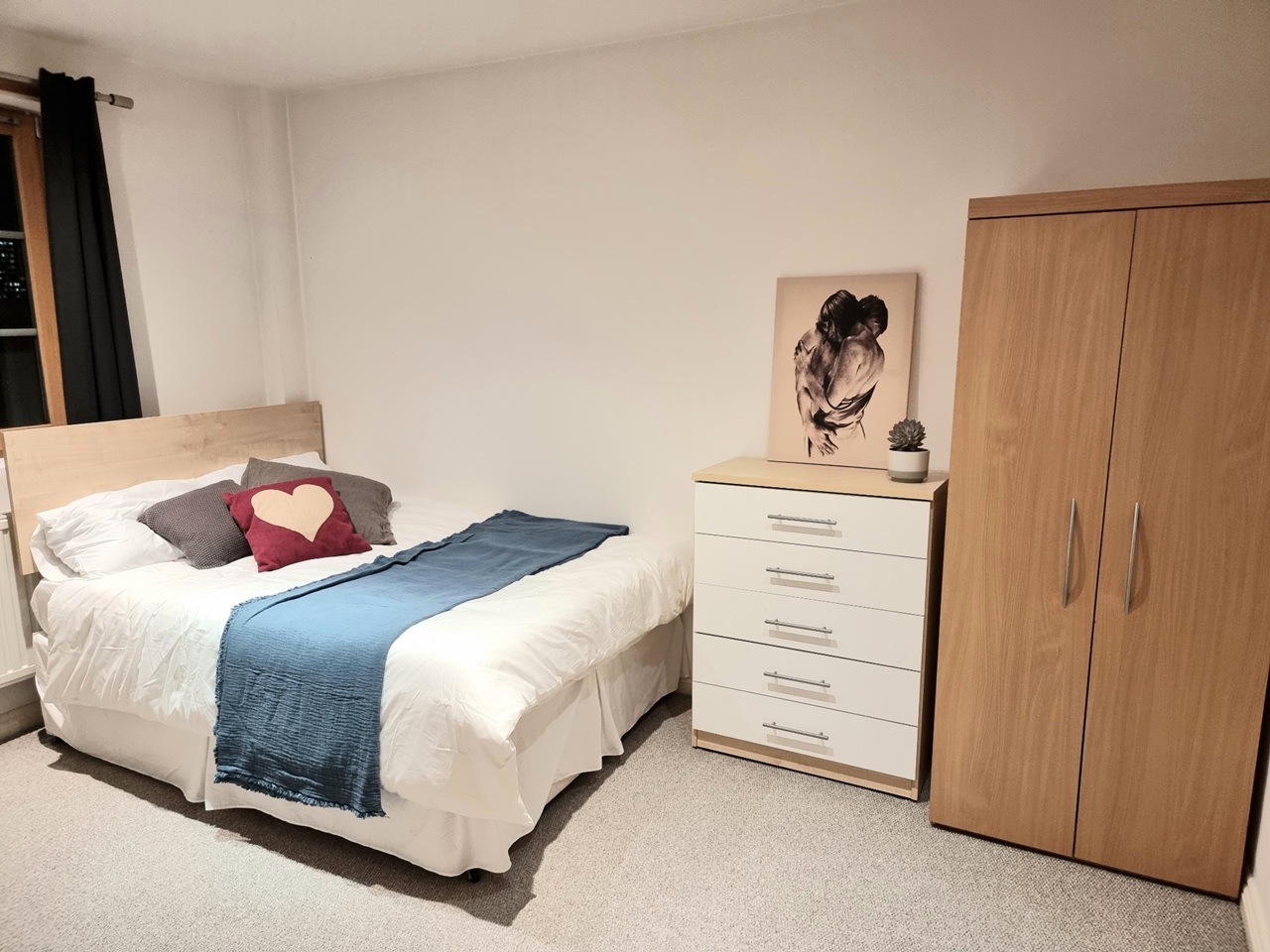 The flat itself is well throughout, modern and perfect for two professionals/couple. It has a large kitchen with all mod cons, this is open plan to a brilliant living space with Juliet balcony.