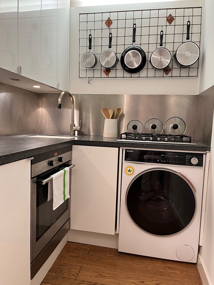 Appliances (fridge, washer/dryer), gas hob, natural oak floor. Double glazing windows.