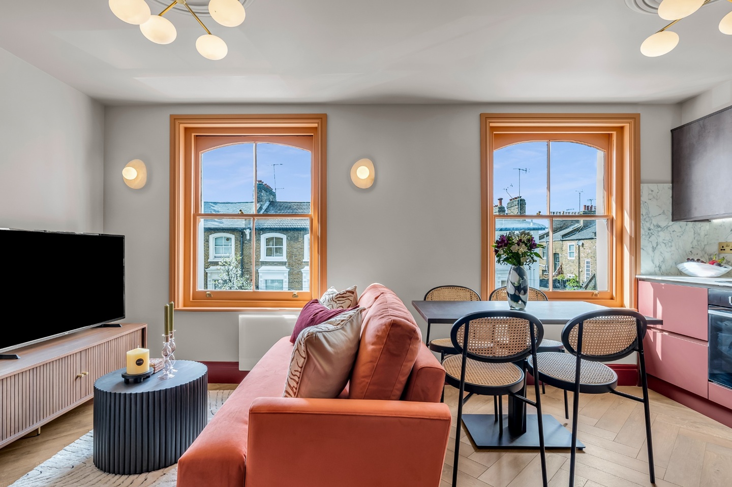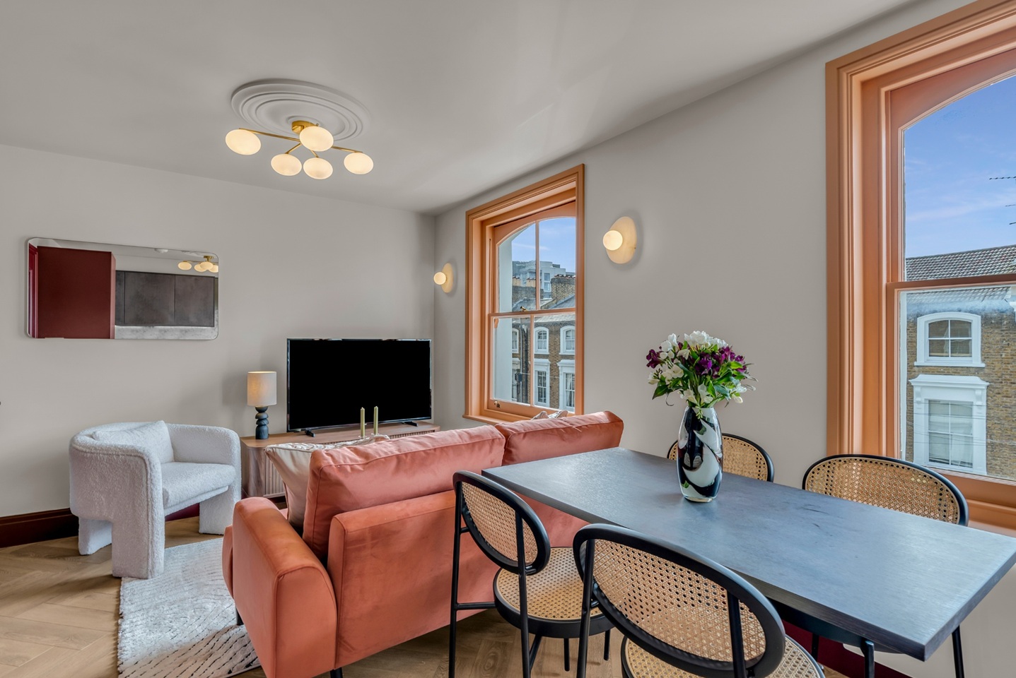 Our apartments in Hammersmith offer stylish furnished accommodation in London. Ideal for young professionals, solo travellers and couples. The apartment features a modern finish and good natural light illuminating all rooms. The kitchen comes equipped with all the essential appliances and cutlery. A good size bedroom with ample storage space with a view of the beautiful neighbourhood. The apartments are located close to shops and restaurants making it a more convenient location.