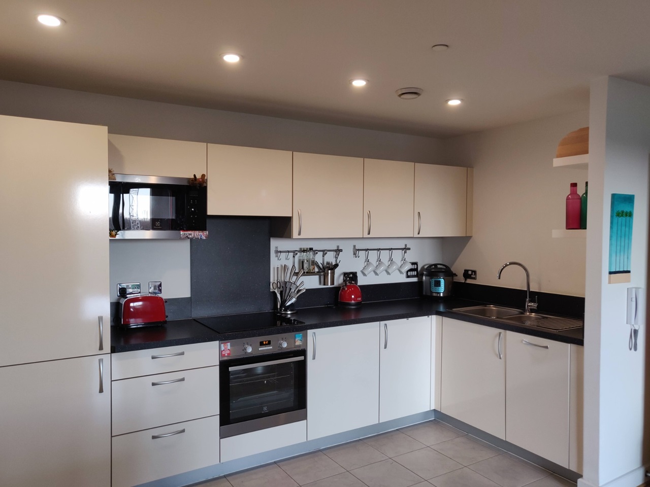 - Modern fully fitted kitchen with integrated appliances (fridge, freezer, oven, microwave and dishwasher)