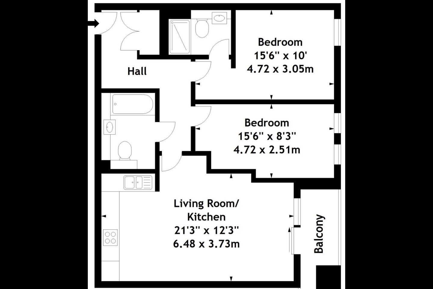 - 2 bedrooms