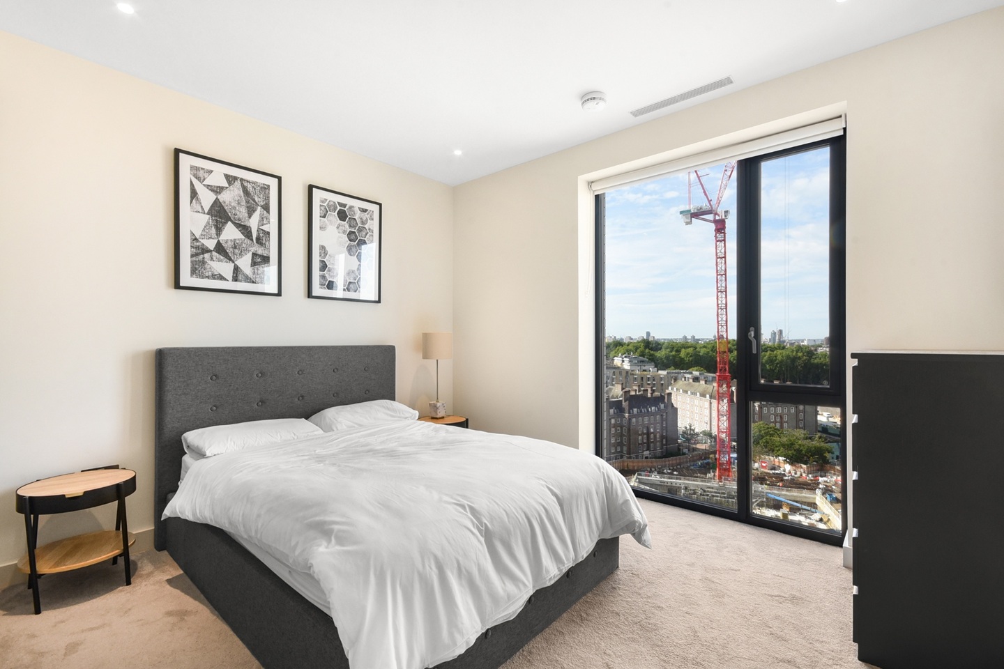Spacious two bedroom apartment set within Ebury Apartments, the development Ebury Place, Pimlico SW1V. Comprising a dual-aspect open-plan living area, bespoke fitted kitchen with integrated Siemens appliances and full height windows leading to a private south facing terrace. Two generous south-west facing bedrooms, master with fitted wardrobe and ensuite, and a modern family bathroom suite.