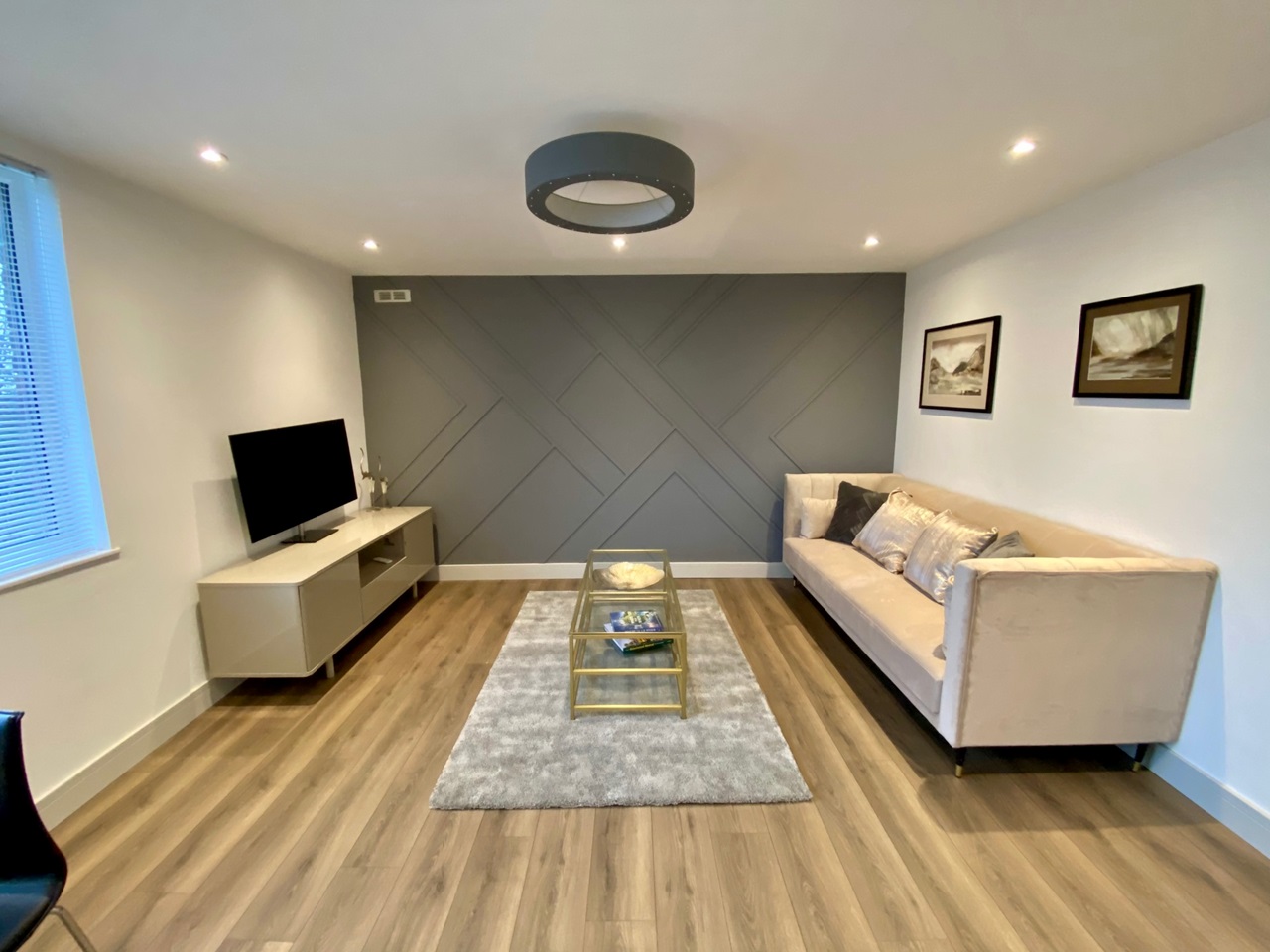 Large lounge with stunning feature wall and large window. Wired with TV and internet points in two locations, to give flexibility when using the space.