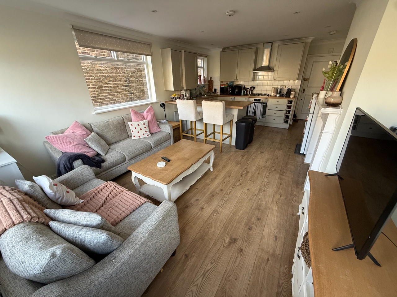 A lovely upper maisonette with a stunning 20'3 x 12'9 open plan kitchen/reception room and exceptional natural light. It benefits from two double bedrooms with built-in storage and a large bathroom fitted with a bath and separate shower cubicle.
