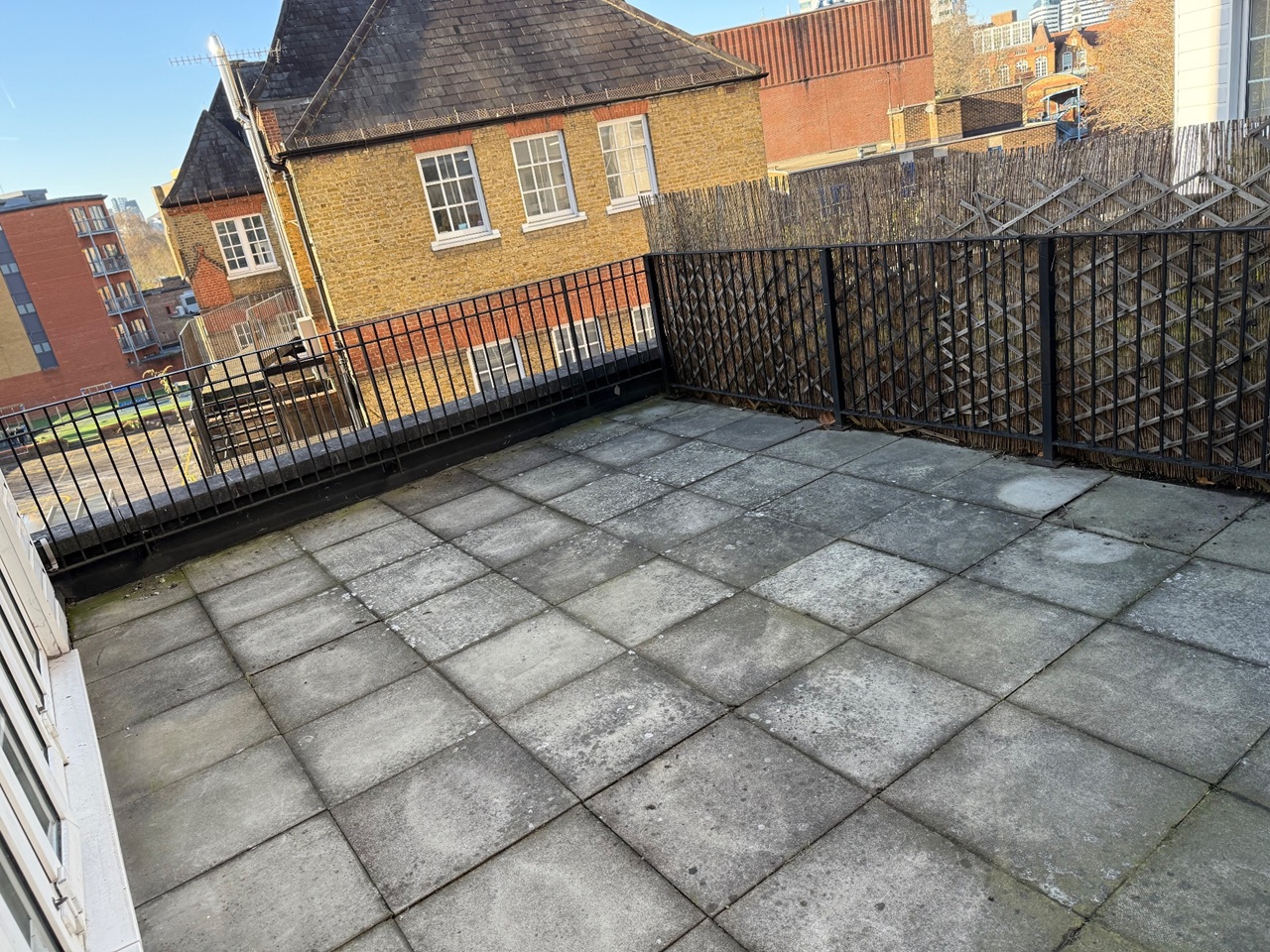 Large 2 double bedroom flat, both with en-suites, plus a third bathroom for guests/visitors. Available furnished or unfurnished. Large outdoor terrace (4 x 6 meters) with views of the London Eye and The Shard. In a quiet cul-de-sac off St Georges Square SE1, this third floor flat (with new elevator) is quiet and bright. 5 minutes walk to Borough (Northern Line), Waterloo (Jubilee Line) and Lambeth North (Bakerloo Line). Served by dozens of buses. The flat is over 1000 sq foot. New (as yet unused) kitchen, with washing machine/dryer, intergrated dishwasher, integrated fridge/freezer, integrated microwave, waist high oven and grill, electric ceramic hob. Close to St George's Catholic Primary School and the sought after Notre Dame Girl's School. The Imperial War Museum is on your doorstep. The basement contains bicycle/scooter storage (with charging point). There is potential for a secure parking space (to be negotiated sepoerately). The flat also includes a large/private secure storage room. The flat has been newly decorated with new flooring. Underfloor heating to en-suites. Available immediately. All water charges are included in the rent. Minimum 1 year rental (assured shorthold tenancy). One months rent deposit required and references and/or guarantor.