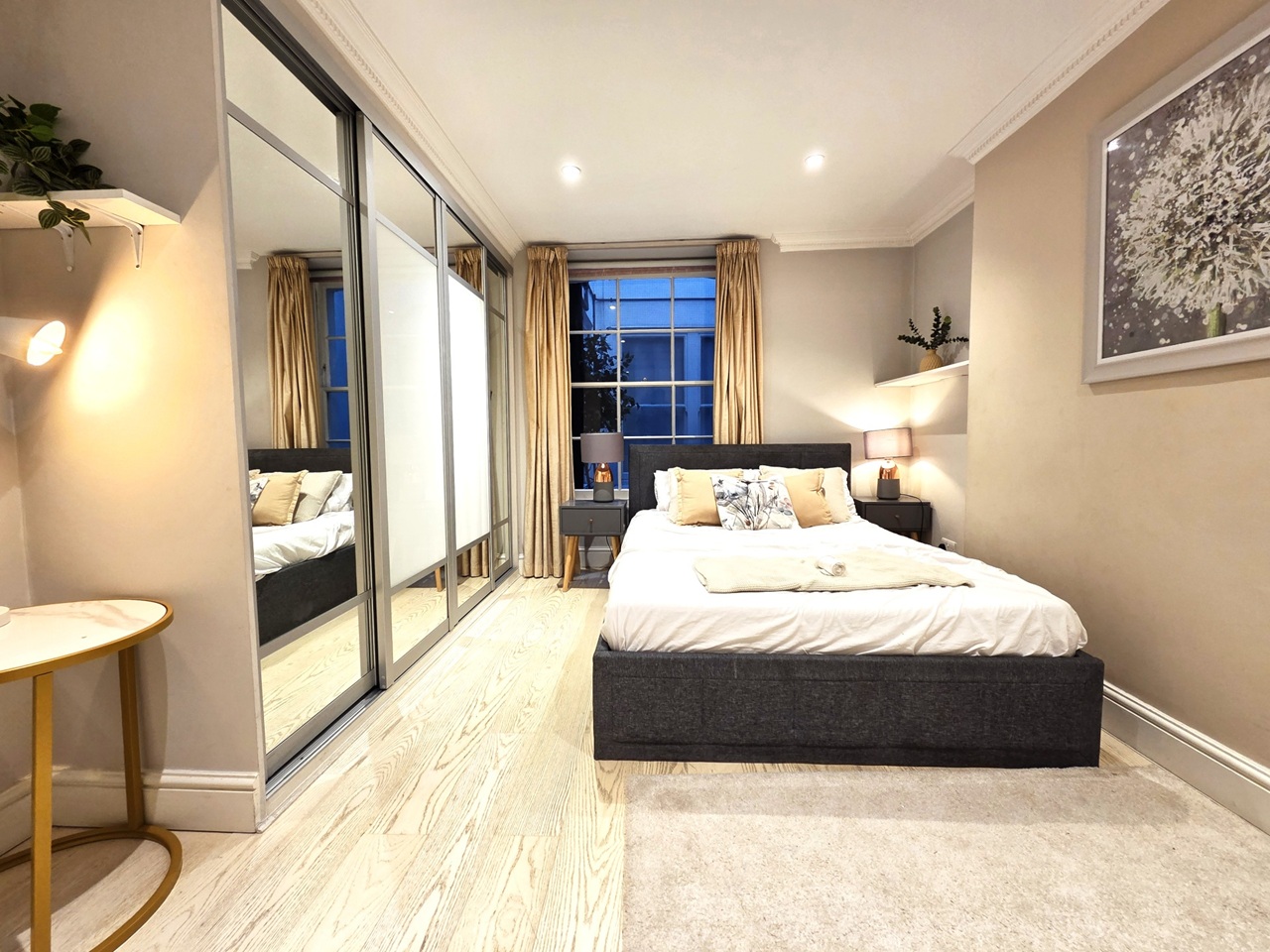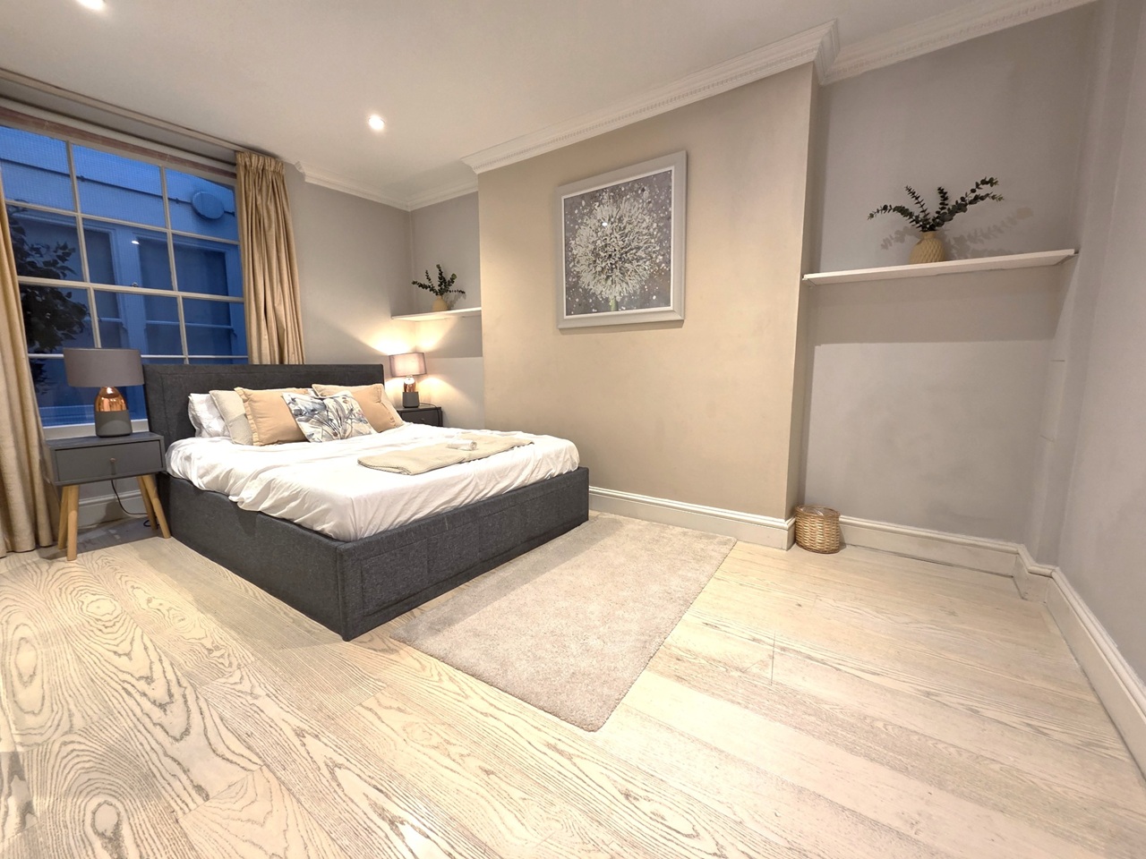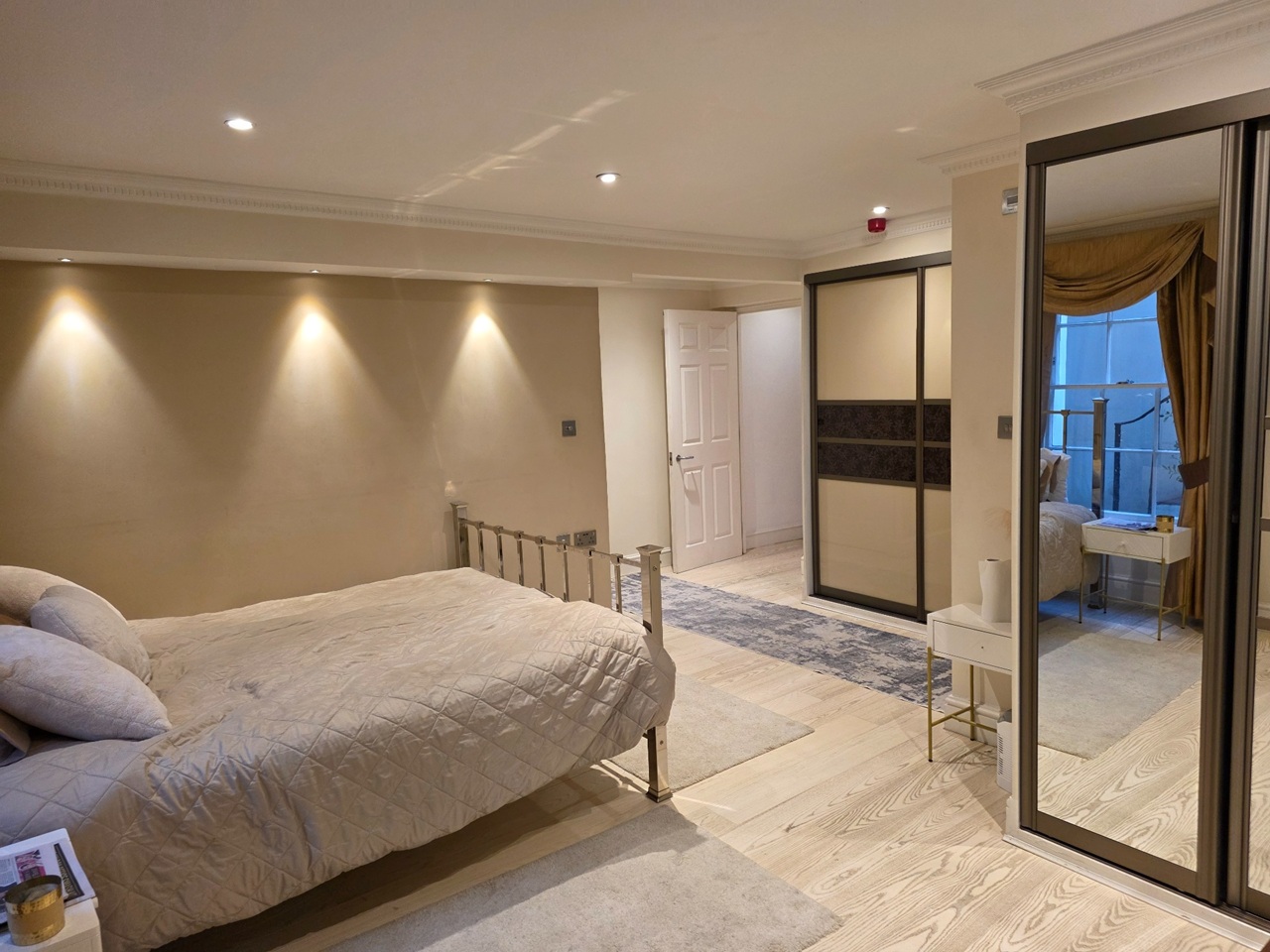 - A second large, spacious double bedroom with floor to ceiling & wall to wall built in wardrobes. Video tour shows it used for 2 children sharing with 2 single beds, but the room has been refurbished to be used as a large double in gorgeous neutral tones.