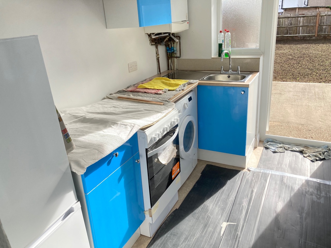 Separate Fully Fitted Kitchen with Fridge Freezer, 4 Ring Gas Hob, Full Electric Oven, Washing Machine with Patio Door To Patio and Garden