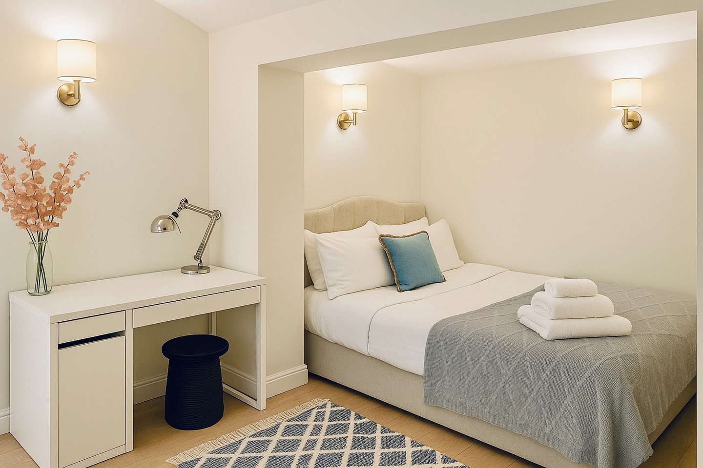 - Double size classy bedroom with a desk