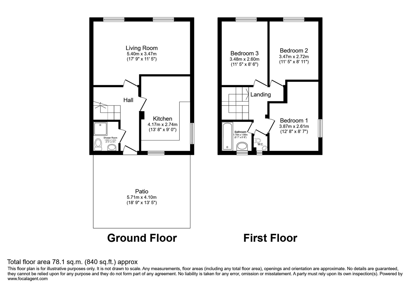 - 2 bathrooms – 1 bathroom and a separate shower room.