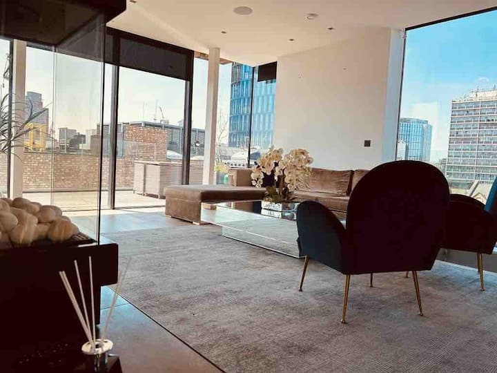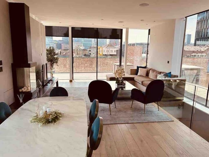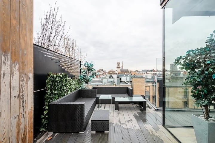 Offering a rare private large terrace, spacious interiors, and premium furnishings, the penthouse is perfect for professionals, relocations, families, or groups seeking a stylish London base.