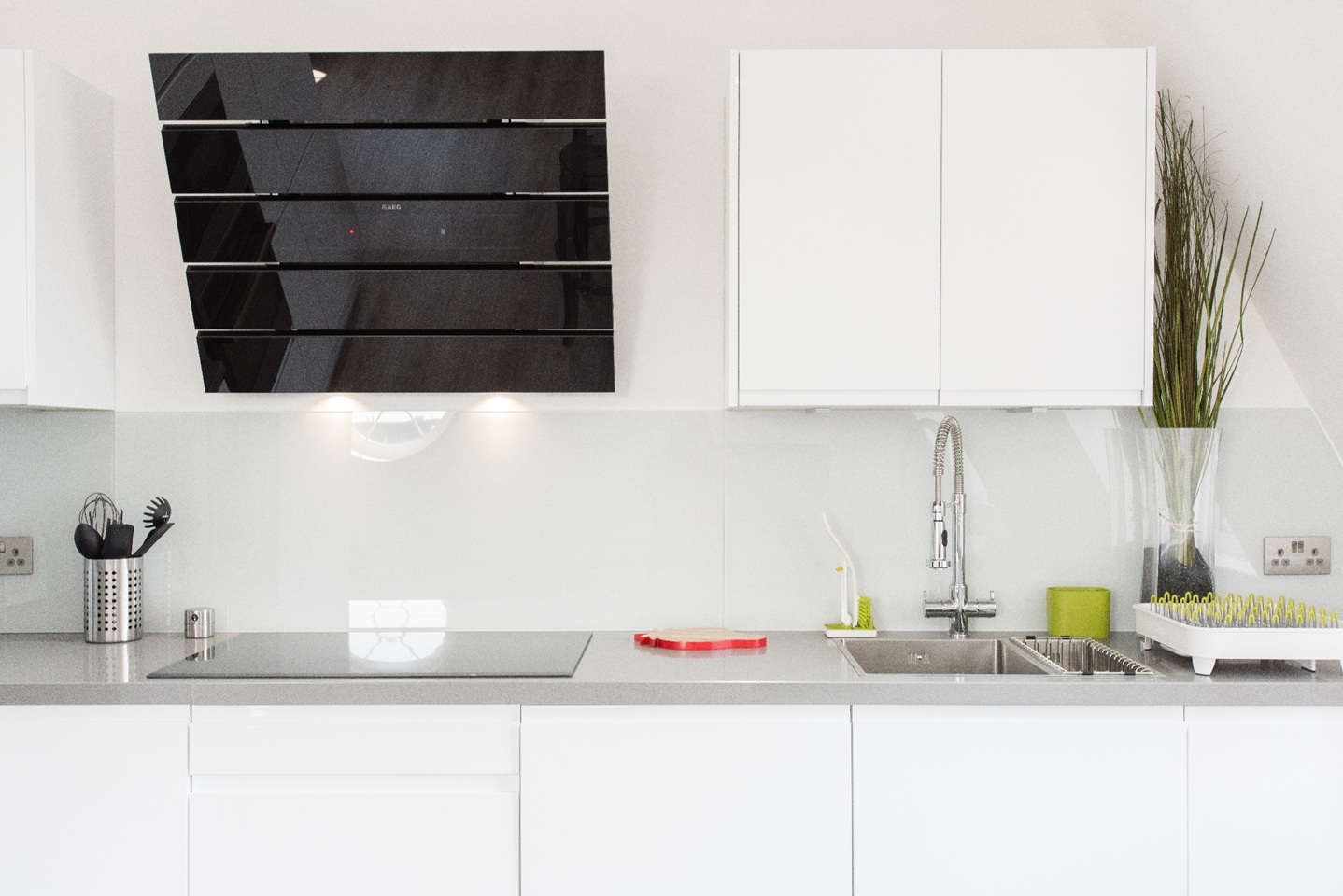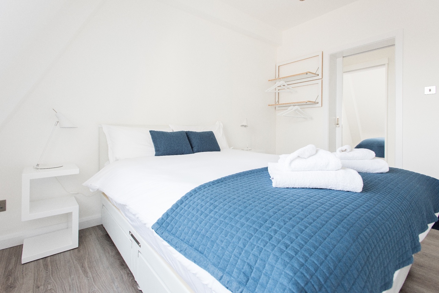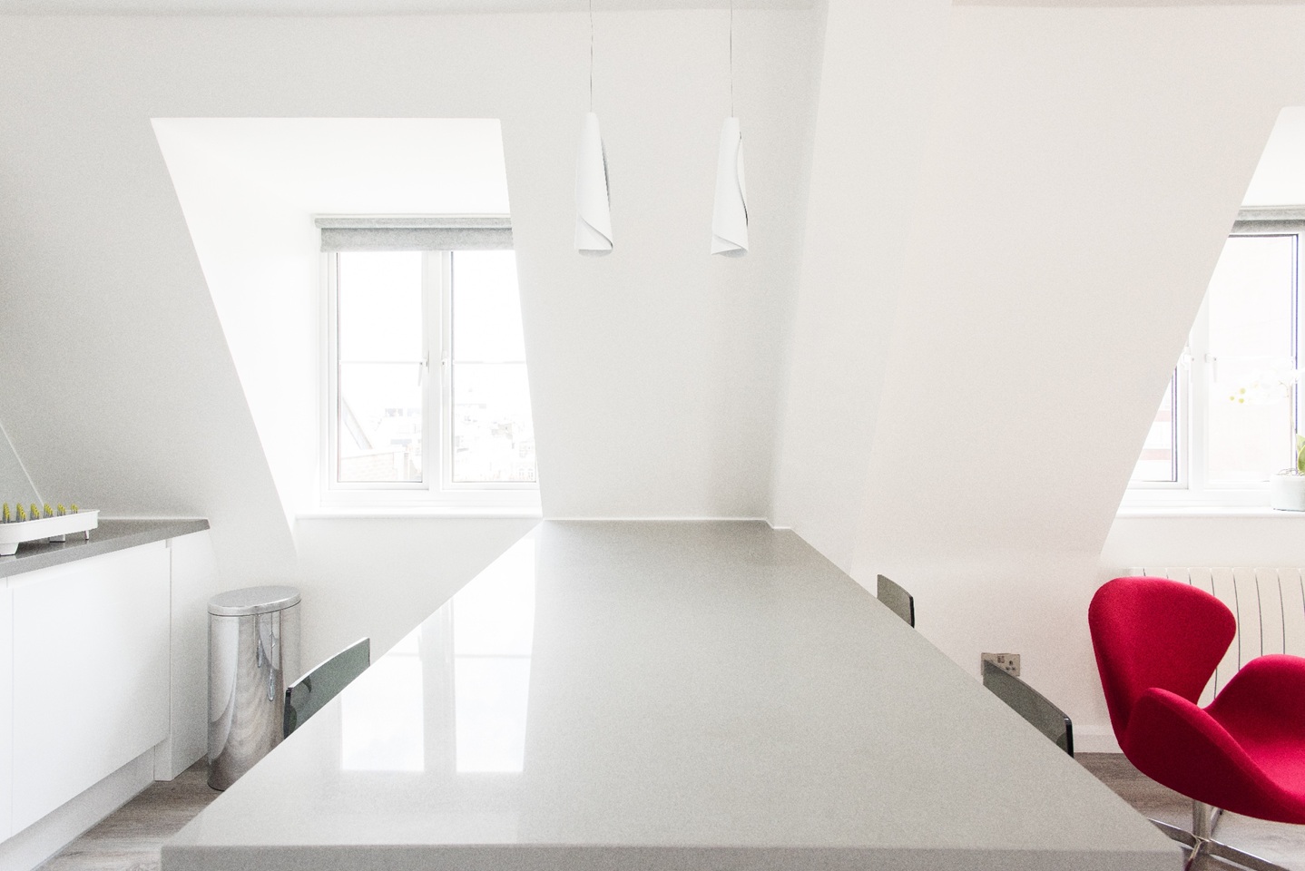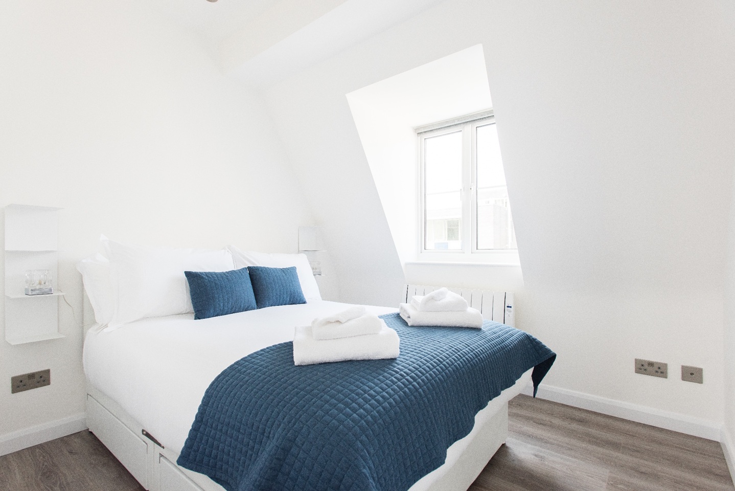 This apartment has very modern furnishings with crisp white walls and stylish tiling in the bathrooms. The living room is very bright and spacious with large windows giving the space a very airy feel. The open plan kitchen has all appliances neatly built into wall mounted cabinet. A kitchen bar sits right across the kitchen space with pendant lights hanging over. It's the perfect spot to perch up on for a morning cup of coffee or a yummy meal at the end of a long day of sightseeing around London. The kitchen is fully equipped with all your culinary requirements to ensure you can enjoy cooking your own meals to feel more at home. A brand new sofa adorns one side of the living room that you can pull out at night to have two additional people sleep, should you need the extra space.