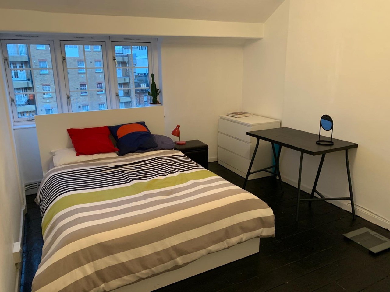 This very popular four bedroom flat is located on the top floor of a well kept Edwardian mansion block. Seymour House is located on arguably the quietest street in Euston, offers fantastic security including residents fob access - required for both the gated grounds and for access to the block itself - and an unnecessary but very reassuring best in class intrusion resistant and fire safety door with unique dimpled keys registered to that property alone. Seymour House offers a highly desirable and very rare combination of being extremely quiet and peaceful yet being located only a few minutes walk from all but a very few of London's - and the world's - leading universities and research institutions. The peaceful location, lofty views and big windows make the flat cool and airy in summer. An excellent central heating system makes it an inviting toasty home in winter. Half the windows face east and offer views that call to mind Hitchcock's Rear Window. The morning sun comes up over the spires and crenallations of St Pancras and floods the kitchen and main bathroom, making the start to the day a happy one. West facing rooms benefit from uninterrupted afternoon and evening sunshine. All four bedrooms are of a good size. In addition to a bed and ample storage each room has a desk, chair and good quality reading lamp. Community Fibre super fast fibre optic Broadband is installed offering download speeds of c300Mbps. Broadband, central heating, hot water and electricity are all included. The kitchen benefits from excellent storage space, electric oven, gas hob, microwave, dishwasher and fridge. A further large fridge freezer sits in the hall. There is a plumbed washing machine that has recently been warrantied. Both bathrooms have WC, sink and shower, both of which are high pressure items. The main bathroom also offers a full size bath.