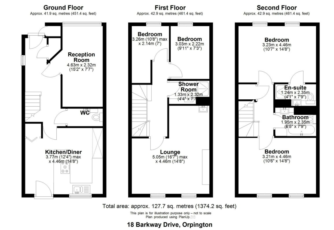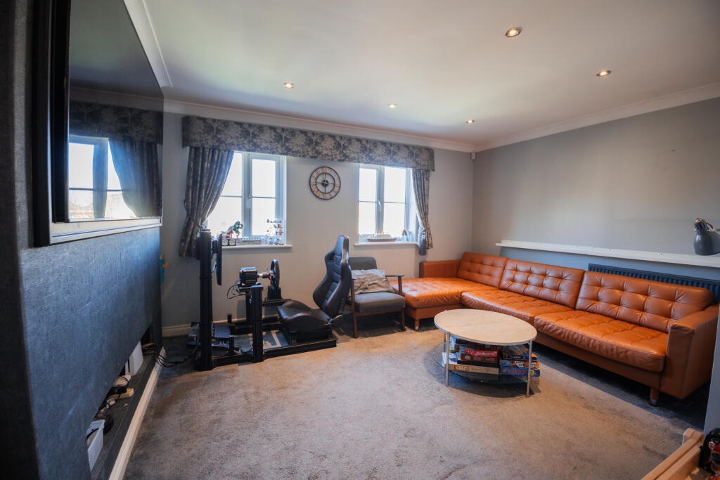 The property features four spacious bedrooms, three sleek bathrooms, and an additional ground floor WC. The principal bedroom includes an en suite, and the top floor offers a separate bathroom—ideal for accommodating guests or older children.