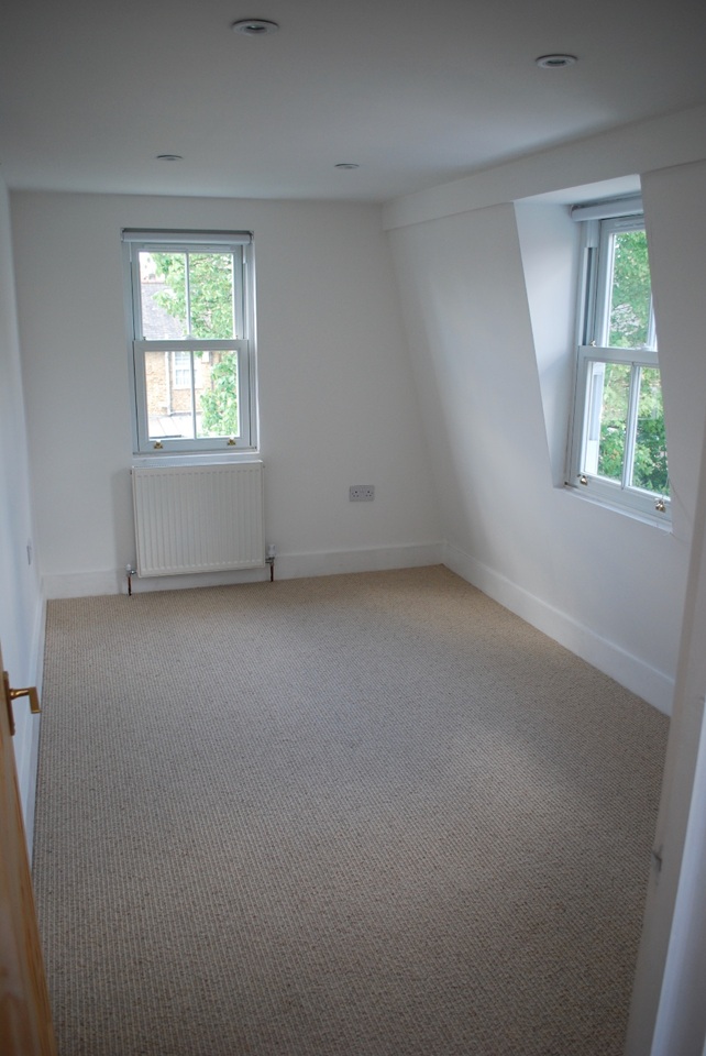 Upstairs there are 4 double bedrooms, including insulated loft extension, all finished with 100% wool carpets. Architect designed tongue-and-groove panelled family bathroom with bath and separate shower. There's a further large walk-in shower in the en-suite on the top floor. The property is mostly unfurnished save for built-in or free-standing wardrobes in 3 of the 4 bedrooms.