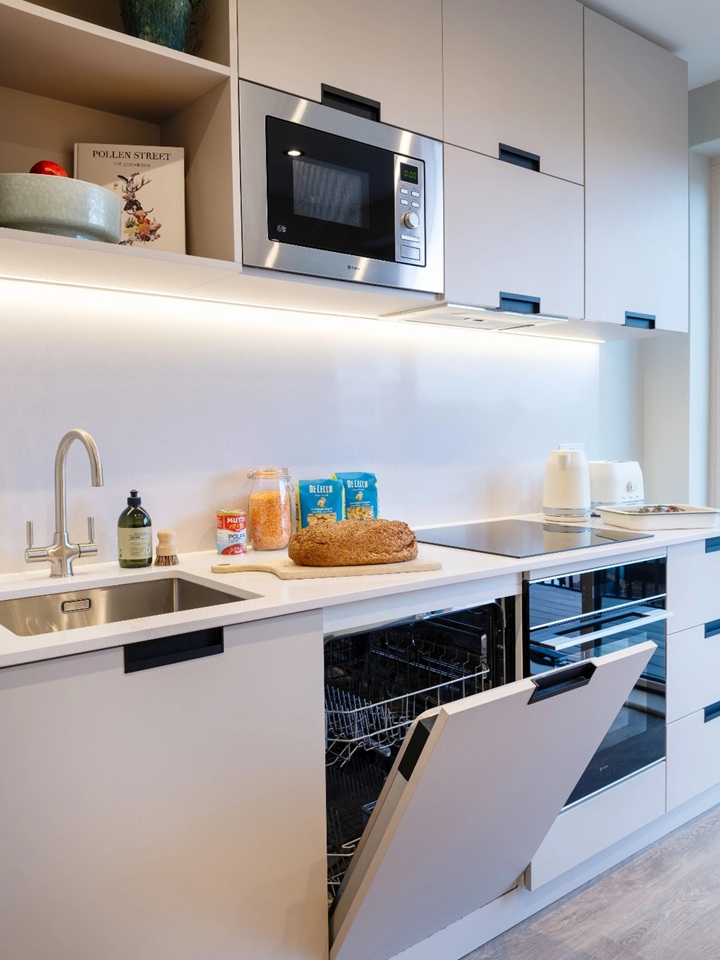 Fully equipped shared kitchen with Bosch appliances (washer-dryer, dishwasher)