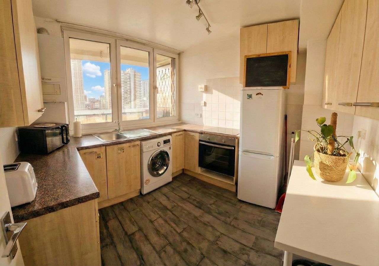 - Kitchen with appliances and cutlery plus kitchen table