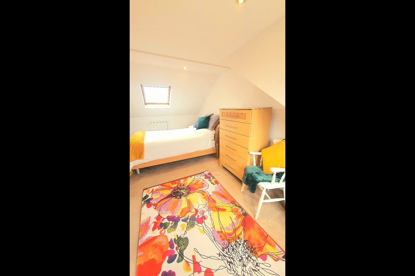 The flat is spread over two floors, and I’m often in and out or travelling so the space feels calm and independent.