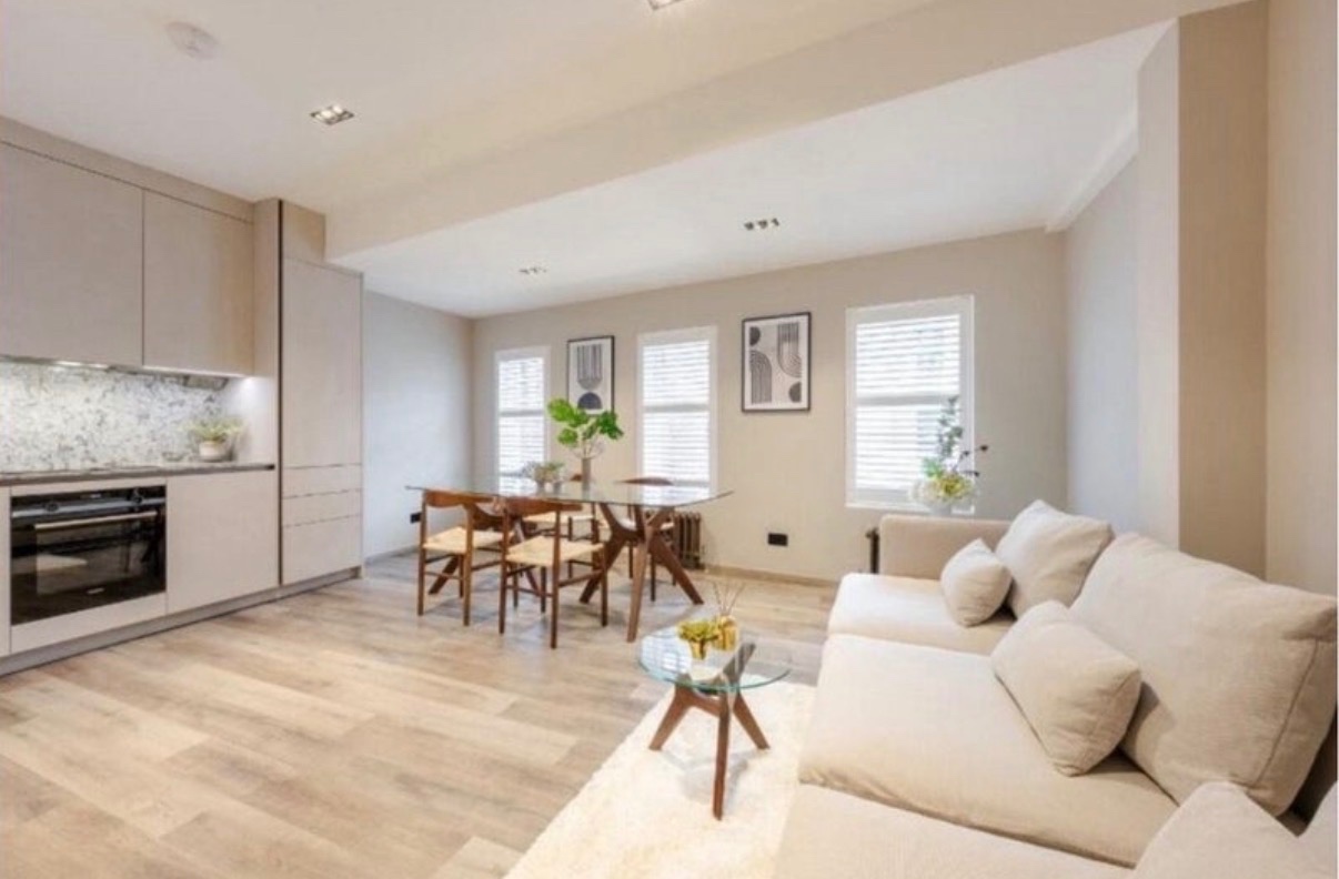 The Flat Newly refurbished 2-bed/2-bath on a quiet street in Farringdon. Everything is fresh, luxurious, clean, and brand new—from the floors to the furniture. 5-min walk to Farringdon Station & Elizabeth Line.