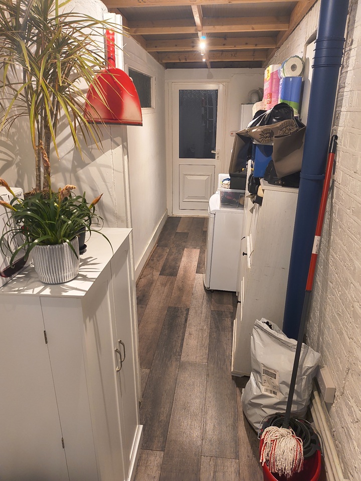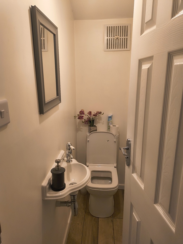 The house has: 3 bedrooms, a living room, kitchen, utility room, garden, basement, and 2 bathrooms — one full bathroom and one with just a toilet.