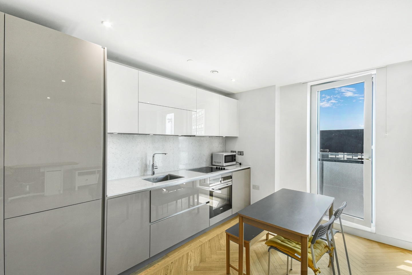Positioned high above the street, a striking studio set within the impressive Two Fifty One development. This unit includes an spacious inviting living/sleeping area, stylish fitted kitchen and integrated appliances, full length windows, wood flooring, fitted storage and stylish bathroom suite.