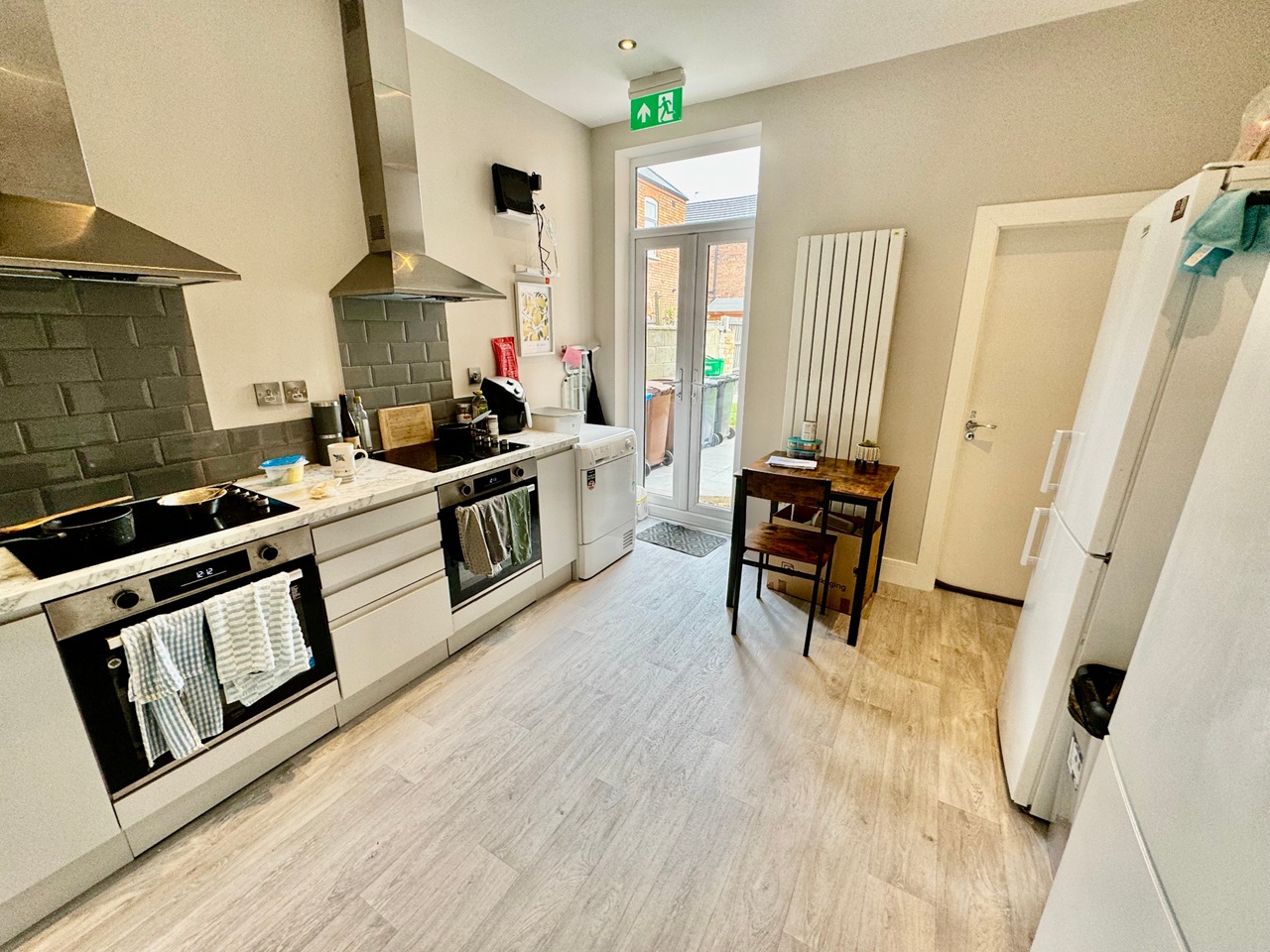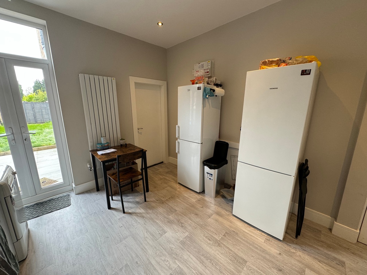 The fully renovated kitchen includes all required and expected appliances of a high-quality house share, some of these being: Two separate fridge-freezers, two separate electric stoves, electric ovens, a microwave, kettle, toaster, washing machine, tumble dryer and more.