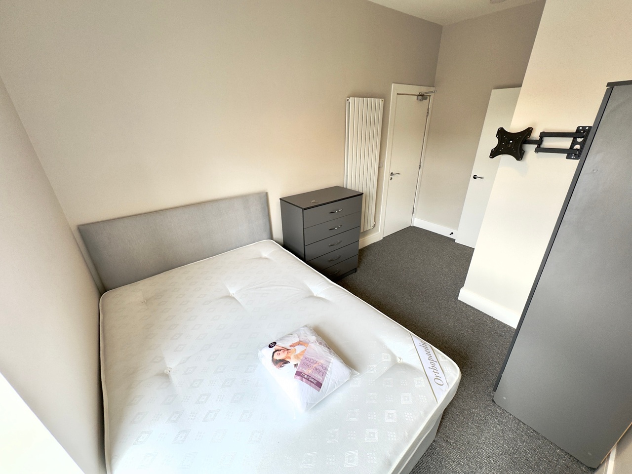 The bedrooms will comprise of X1 double bed frame and mattress, X1 side table with drawers, X1 chest drawer (X5 drawers), X1 double wardrobe, and a wall-mounted TV bracket.