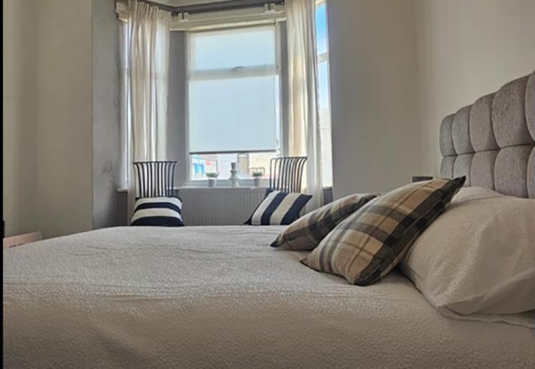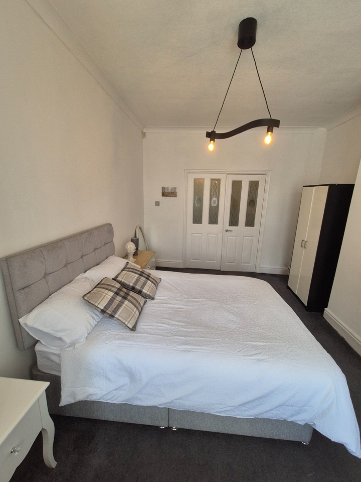 Ground floor private apartment with own entrance . Fitted kitchen with oven, hob, washing machine, large standing fridge/freezer, dishwasher. Good sized victorian apartment with original features across 1 level with through lounge. Open plan design, fully carpeted throughout. Large bedroom, Separate bathroom with shower.