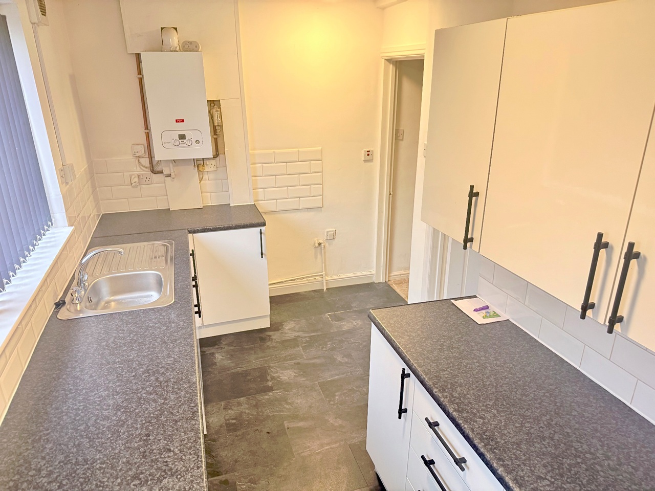 The property comprises of an entrance area which leads into the spacious lounge, complete with grey carpet & white painted walls.