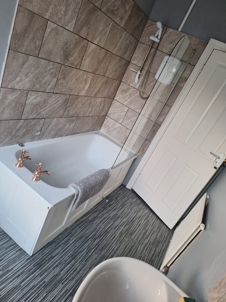 - Family Bathroom with Shower over Bath.