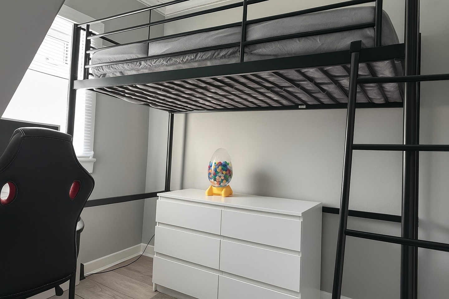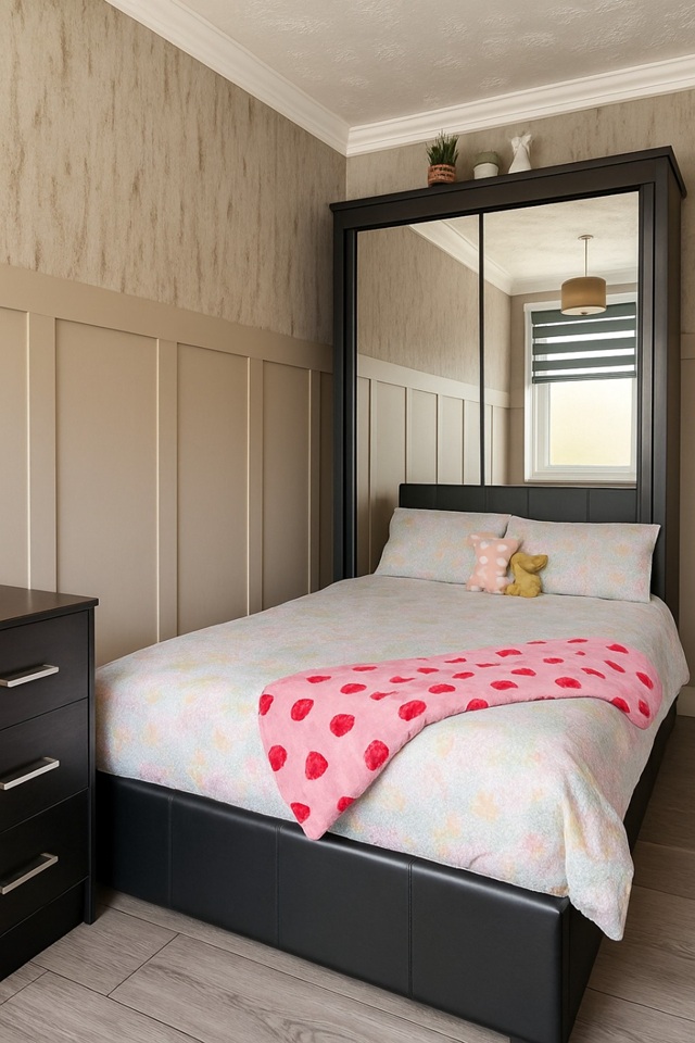 The downstairs bedroom adds flexibility, while the upper floor creates a quiet retreat with ample storage options throughout.