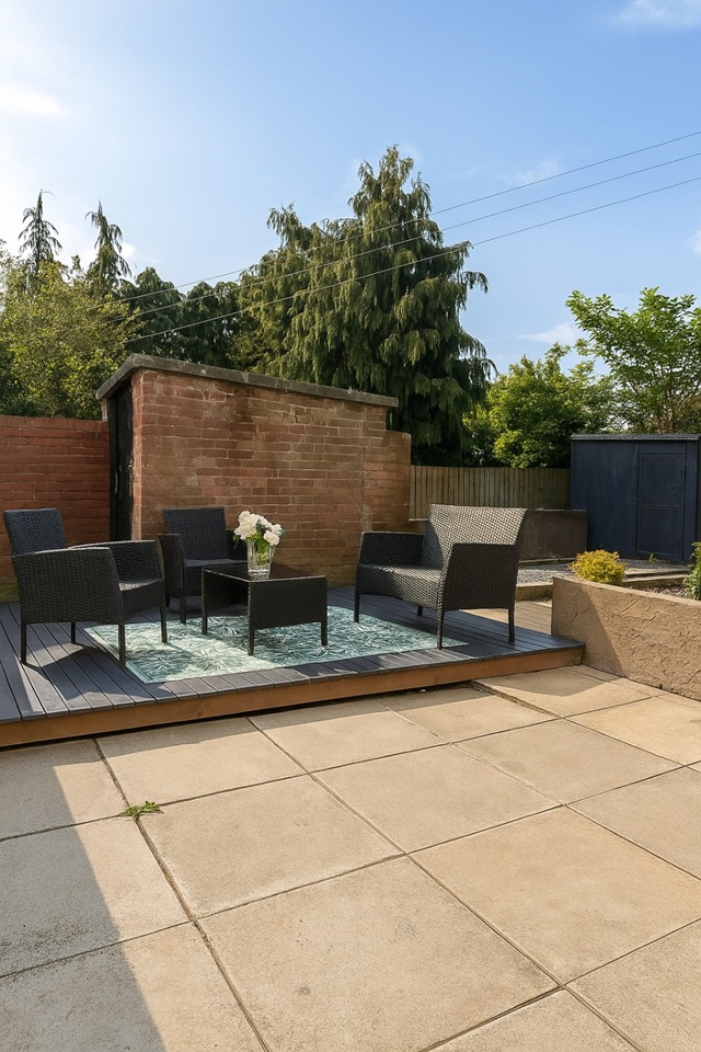 Enjoy two private outdoor spaces: a large paved front garden and a generous rear garden, perfect for family gatherings, children’s play, or unwinding in the sunshine.