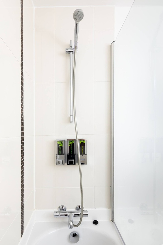 🚿 The bathroom has a shower over bath with complimentary toiletries provided.
