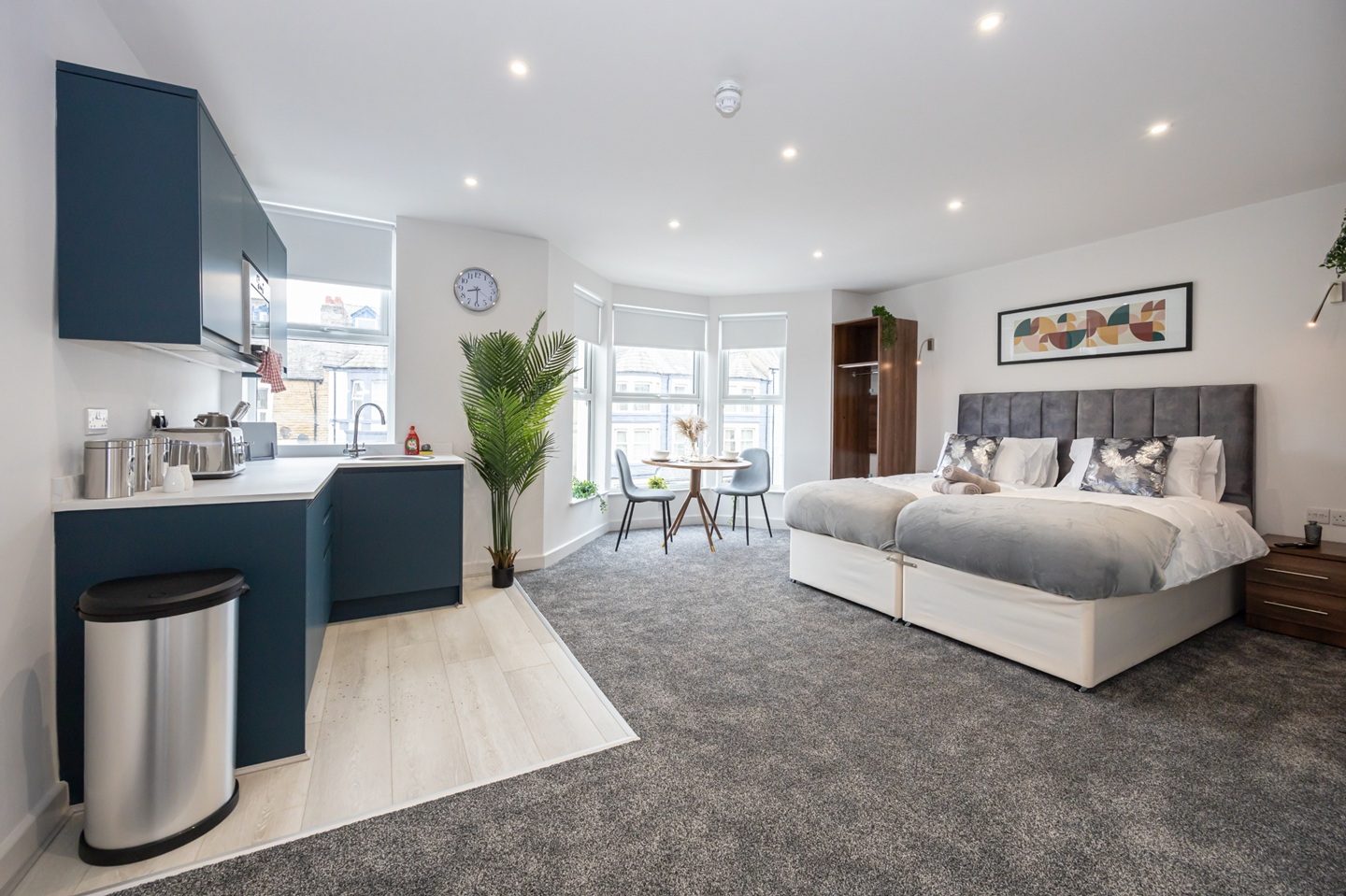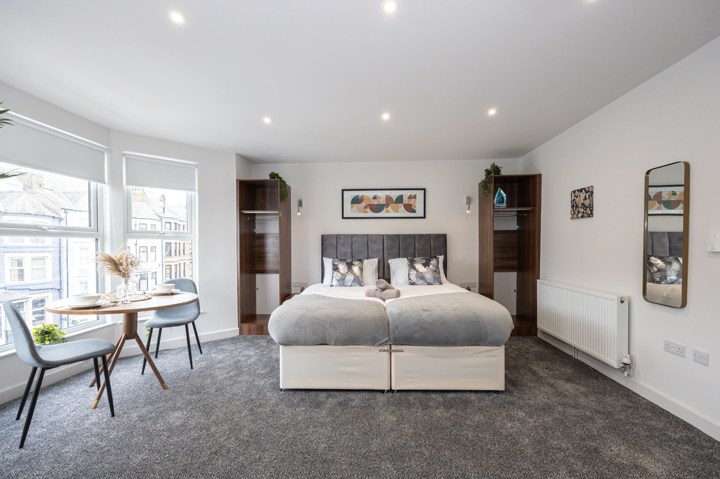Want front-row seats to stunning sunrise and sunset views over the ocean through huge bay windows? Then this apartment is for you. Located on the second floor, this studio apartment has a comfortable super king bed, offering the perfect night's rest after exploring Morecambe Bay.