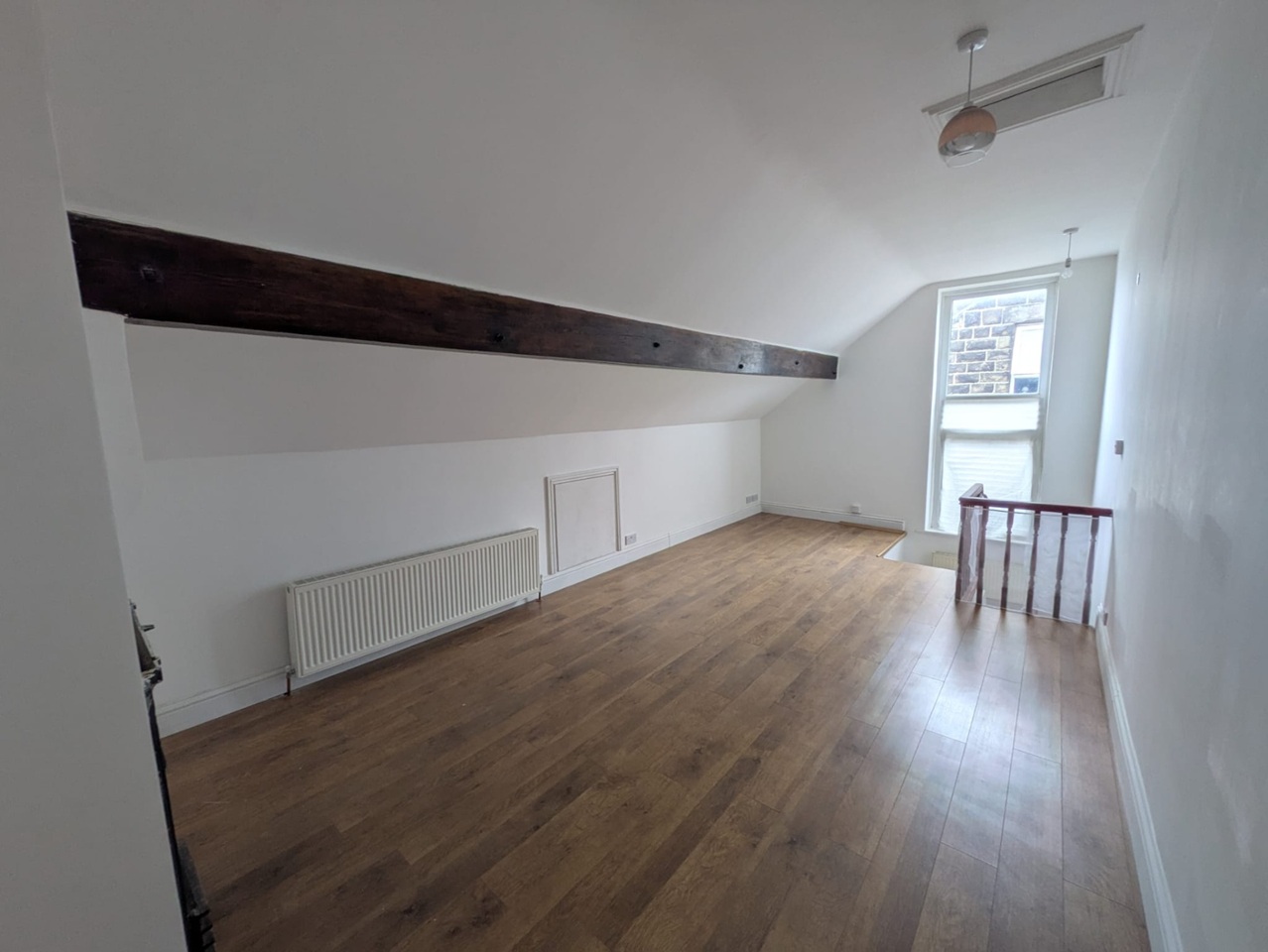 This property has a great new built feeling combined with the warm comfort of wood laminate flooring. Starting from the top, the loft is an open space area that can easily combine bedroom and office space. The first floor has a gorgeous new bathroom and 2 spacious bedrooms. The stunning living area is bright and the kitchen fitted with essentials. There is also a large storage area in the cellar.