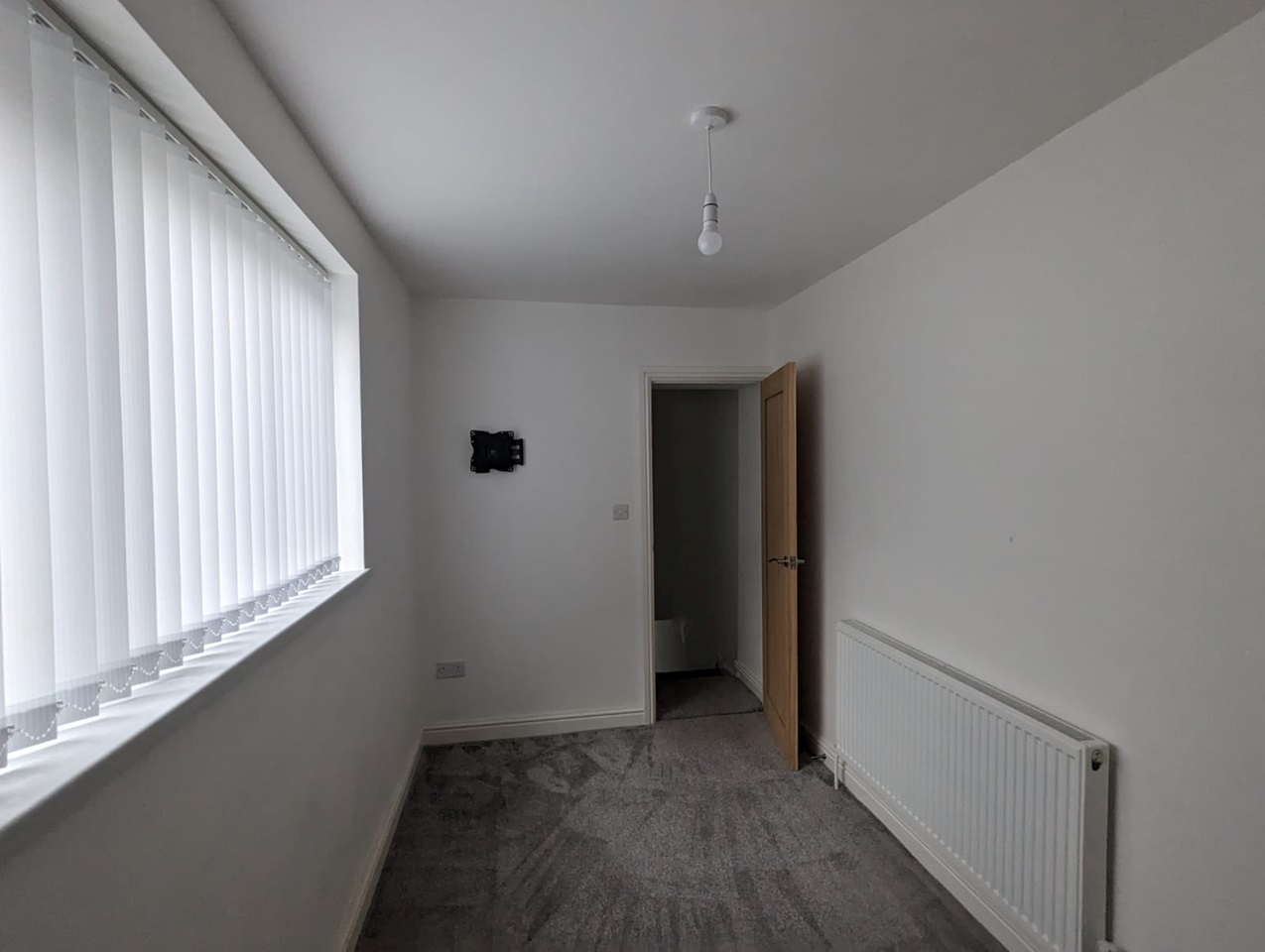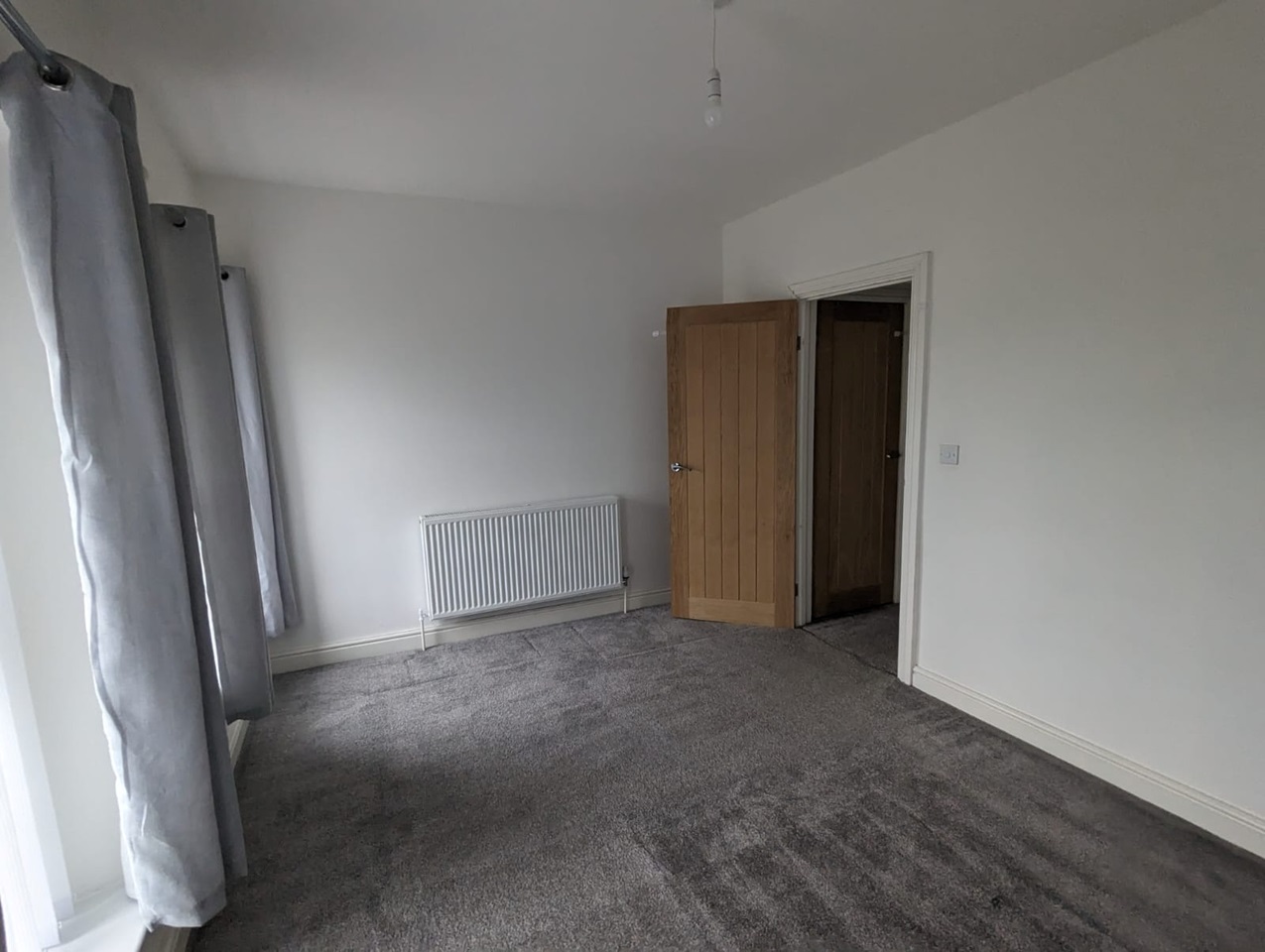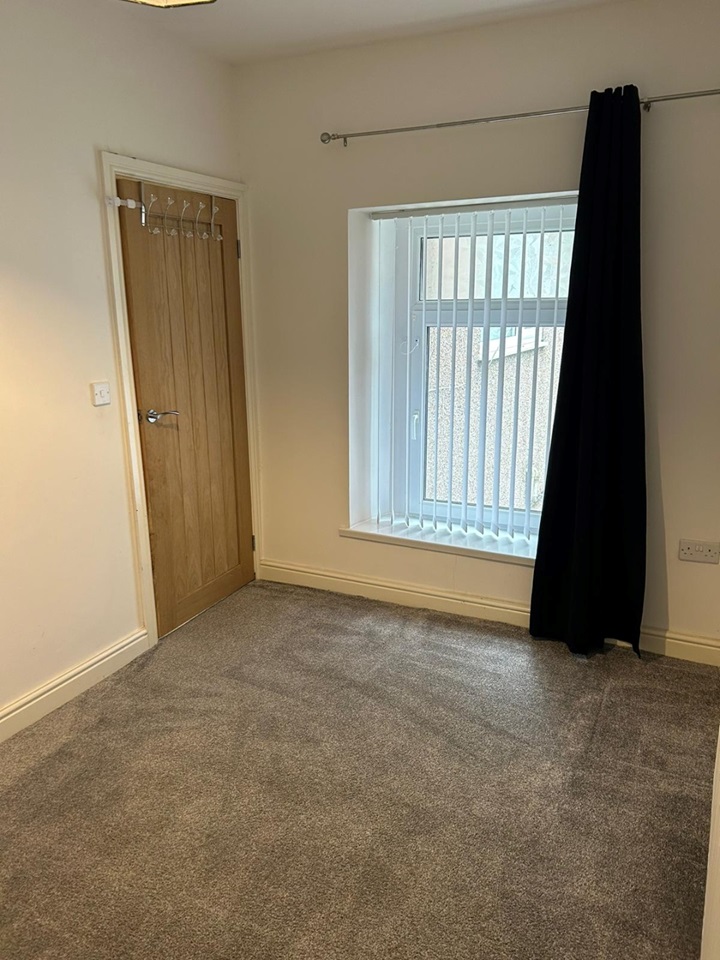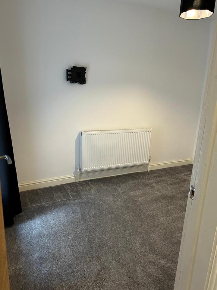 This bedroom overlooks the front of the house and comes complete with blinds, curtains and lampshades. This is a good-sized room with 2 large windows and plenty of plug sockets.