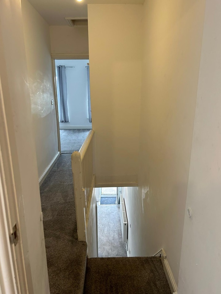 This bedroom is situated at the back of the house and includes a great view of the garden below with vertical blinds. This bedroom is the smallest bedroom, narrow but long and houses the airing cupboard housing the hot water tank and shelving. This room would make a great office or a smaller child's room.