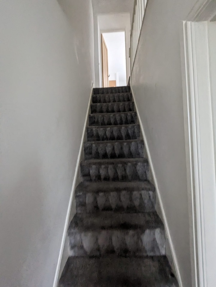 Coming through the entrance of this property, you will find a cosy-sized lounge with stairs leading off to the right and a door through to the kitchen.