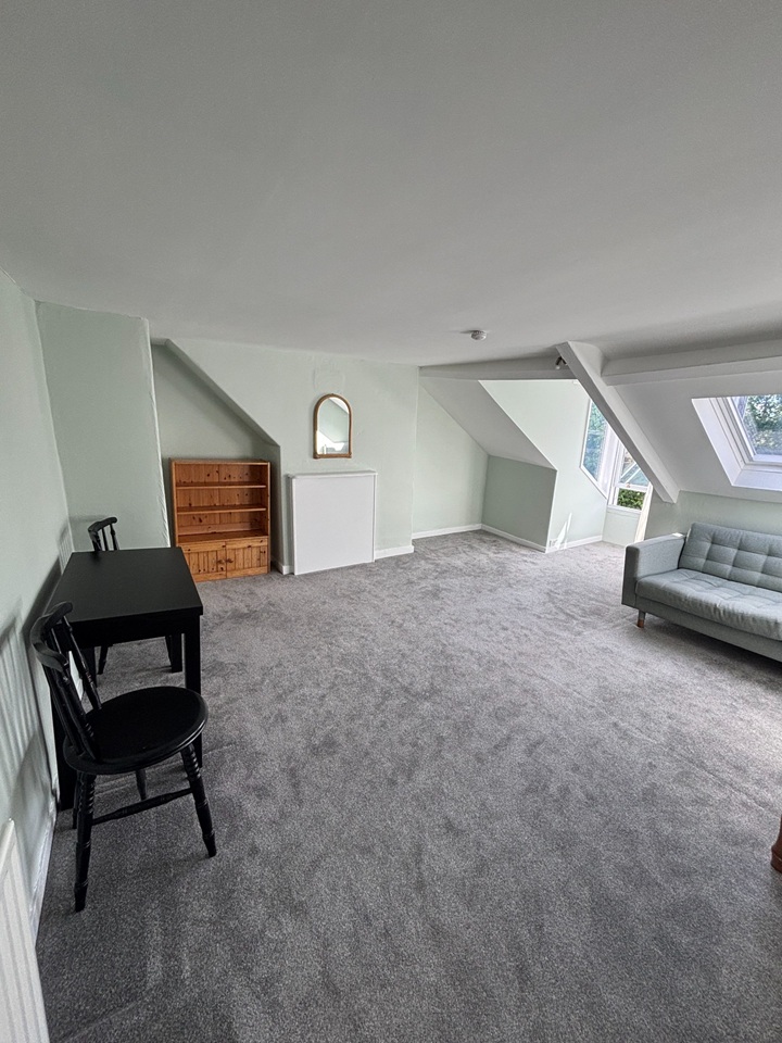 The layout includes a spacious double bedroom at the rear of the property, a bright living room at the front, and a modern kitchen. There is also a private bathroom and the added bonus of a large storage cupboard on the landing. With the whole top floor to yourself, this is an ideal home for someone who values peace and privacy.
