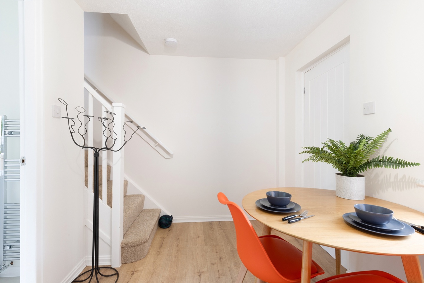 Fully equipped house - MOVE IN with JUST your SUITCASE!! - Fully furnished and equipped with anything needed (kitchen wear, small - large appliances and amenities), beautiful house with LARGE back yard and OWN DRIVEWAY in quiet residential area with friendly neighbours. This two storey, recently refurbished and modern terrace house is offered entire for rental now. Move in with a suitcase and enjoy living in a gorgeous property with very comfortable king size bed, smart tv and releiable fast wifi!